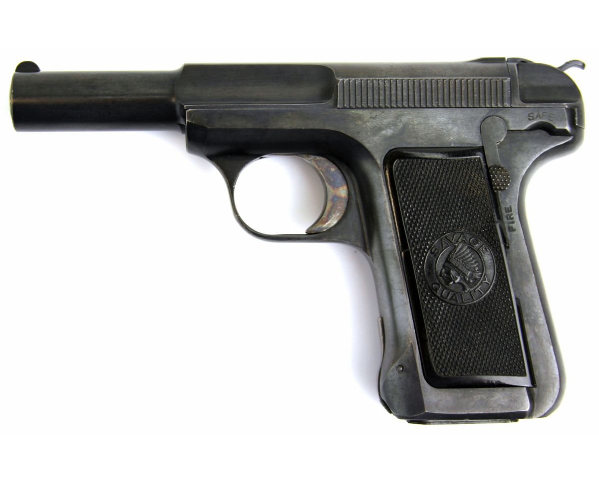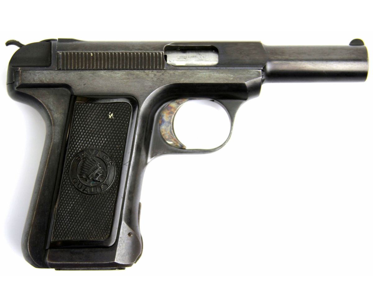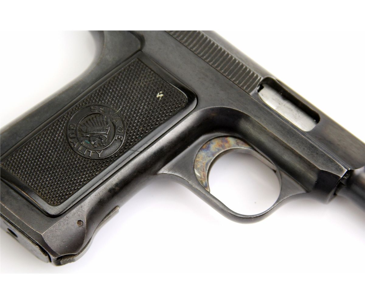 SAVAGE MODEL 1917 .32 ACP PISTOL Savage Model 1917 semi automatic pistol in .32 ACP. Savage patent lines on top of slide. Type: pistol Manufacturer: Savage Model: 1917 Caliber / Gauge: .32 ACP Serial Number: 209520 Condition: Bore is very good, bluing about 85%. Chip and crack to left grip panel, right grip good.