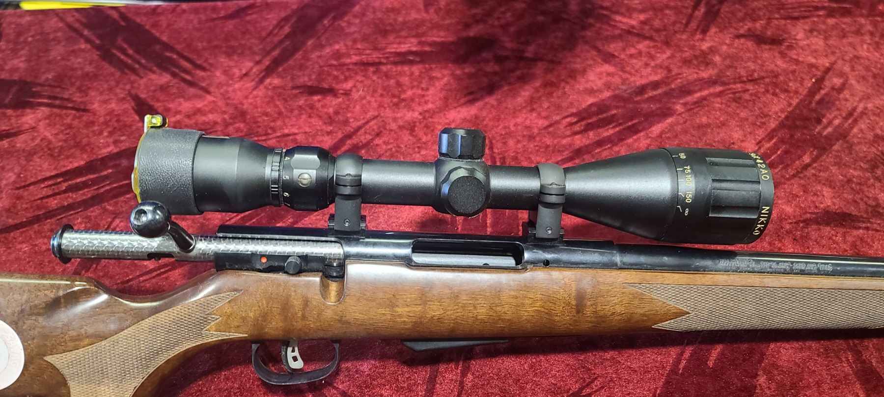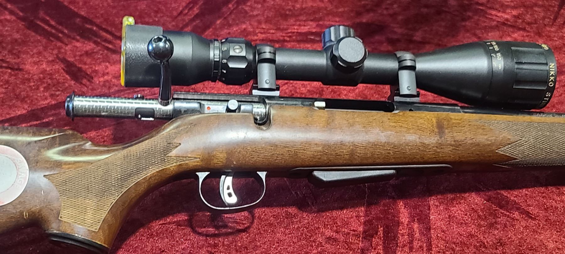SAVAGE MODEL 25 223 REM BOLT ACTION C/W NIKKO STERLING 3- 9 X 42 AO SCOPE,