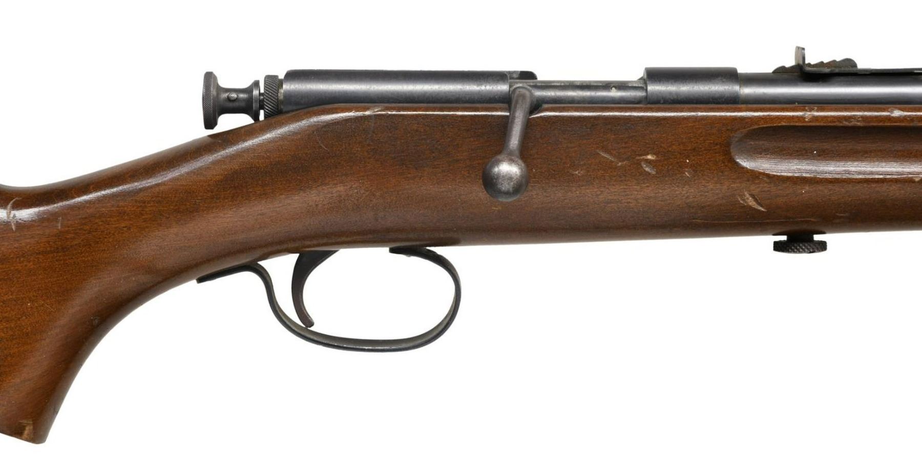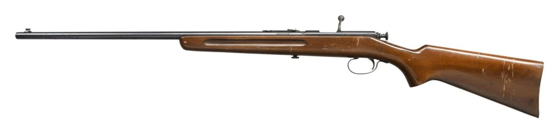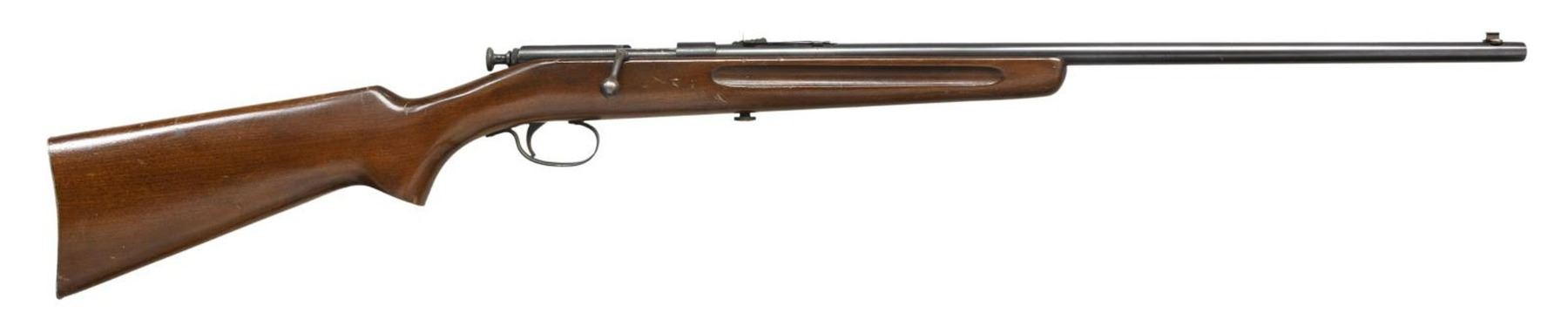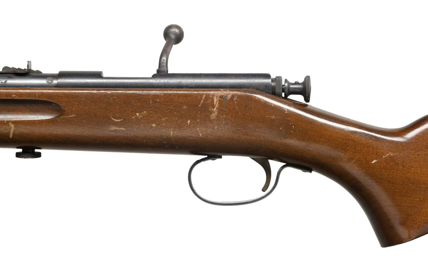 Cal. 22 S, L, LR. NSN. Bbl 24". Model 3 single shot bolt action rifle mfg. by Savage Arms Corp. Top of bbl. is marked with Savage's mfg. information, with the cal. designation on the left. Metal components exhibit a blued finish. 1 piece wood buttstock with smooth metal buttplate. CONDITION: metal components retain the large amounts of their original factory blue finish, exhibiting some areas of wear and thinning, with scattered surface oxidation overall. Bright bore with strong rifling throughout. Stock shows scattered marks and small impressions from handling and storage, but is otherwise sturdy and serviceable. (23-4997/MLW). CURIO. $75-125.