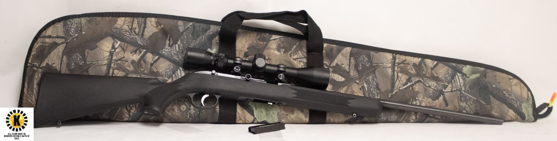 SCOPE, HARDSHELL CASE AND EXTRA MAGAZINE. ACTION MOVES SMOOTHLY & FREELY, POYLMER STOCK IS IN NEAR PERFECT CONDITION, SURFACE RUST ON THE RECIVER, CARBON SCORING ON THE BOLT, BLUEING OTHER WISE IS IN NEAR PERFECT CONDITION,