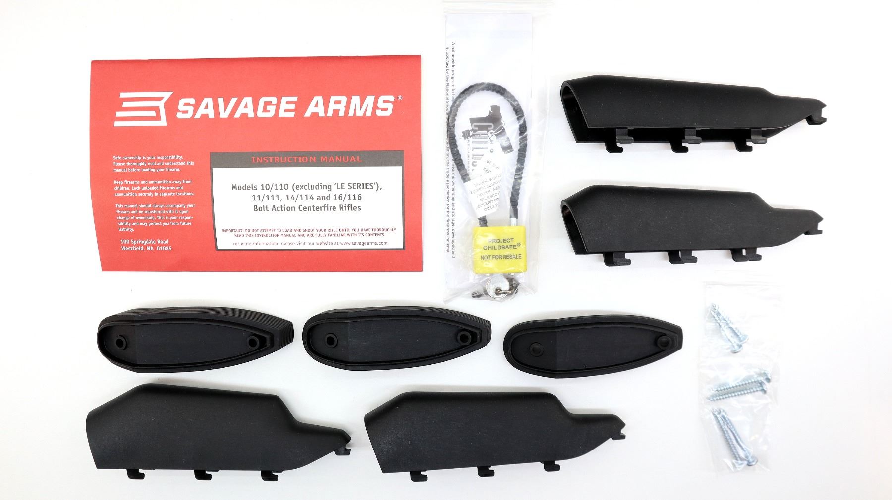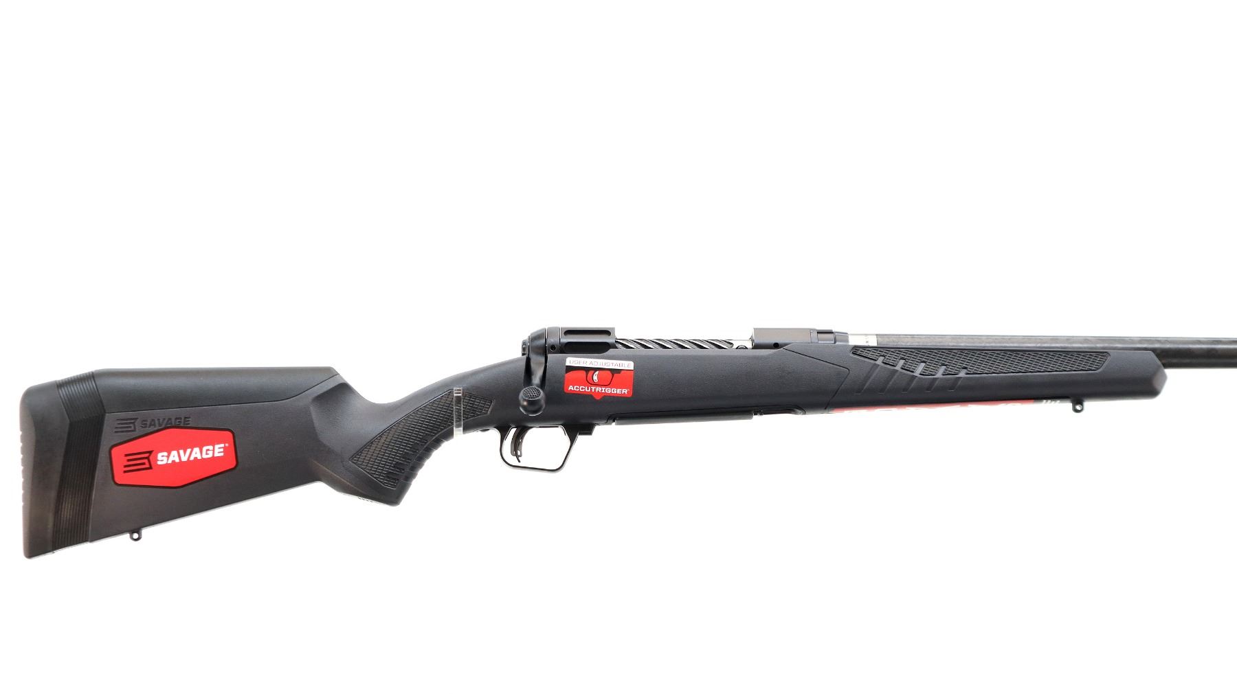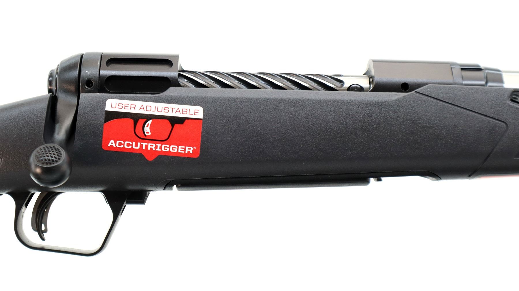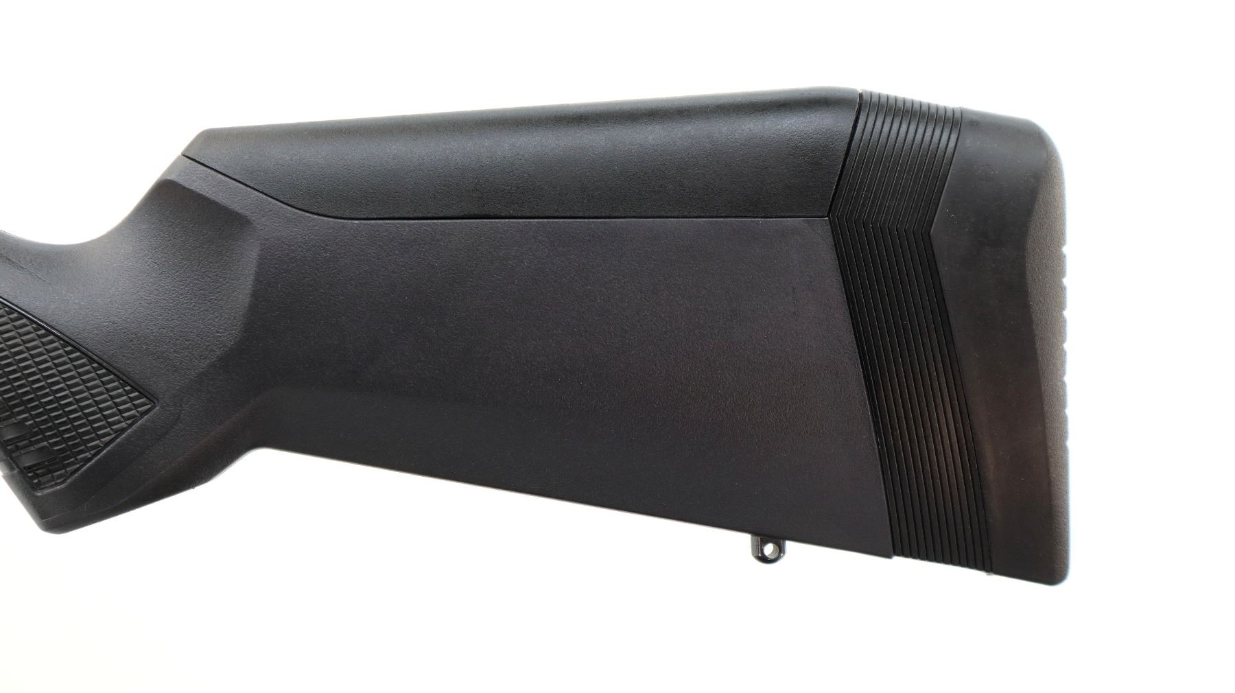 Main Description: No sights, stainless Carbon Fiber wrap barrel threaded at muzzle with cap, Melonite finish lightened receiver drilled and tapped with no plug screws installed, fluted bolt, checkered knob, tang safety. One piece black synthetic stock, checkered forearm and pistol grip panels, black rubber recoil pad, grip cap, accu trigger, swivel studs, retains factory stickers. Accessories include: four replaceable combs with different heights, three different thickness recoil pad spacers.