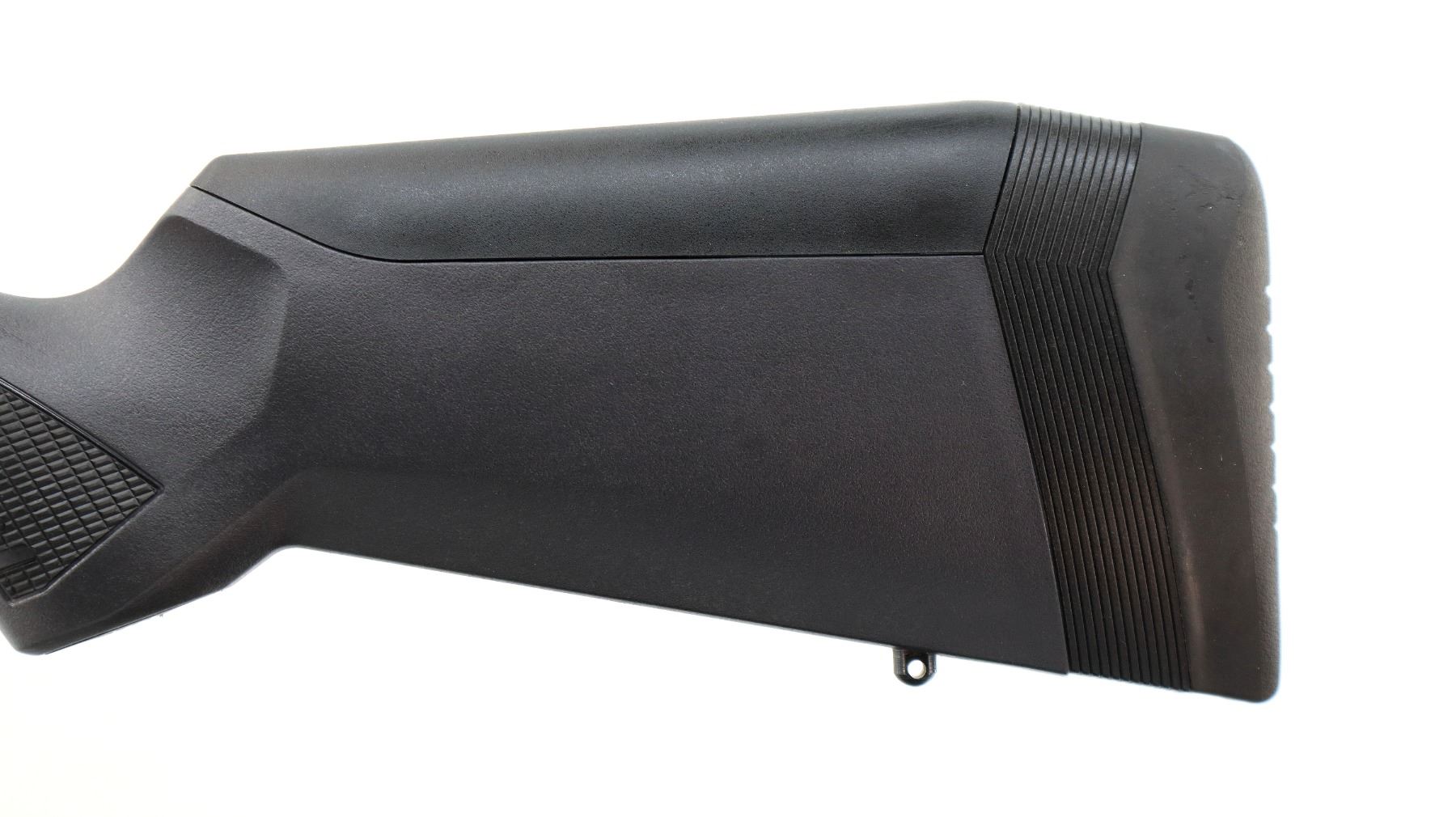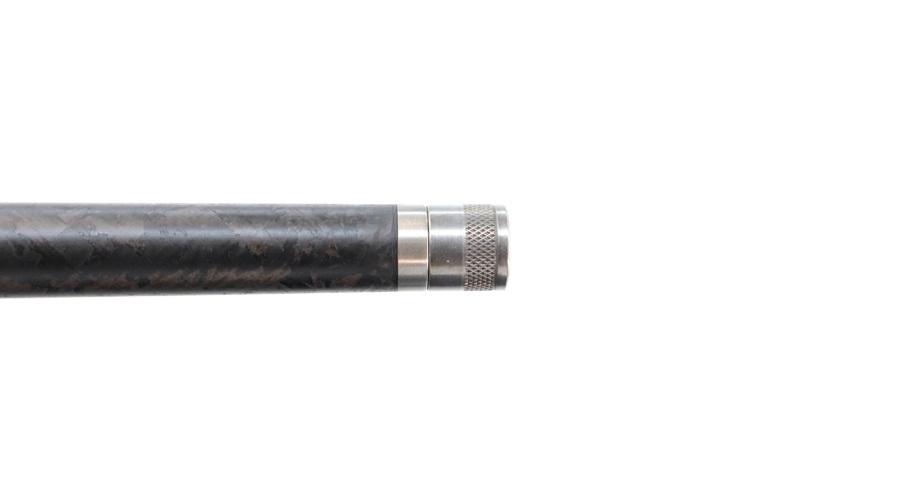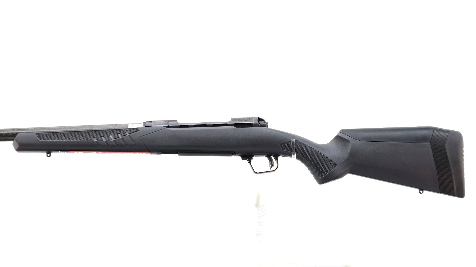 Main Description: No sights, stainless Carbon Fiber wrap barrel threaded at muzzle with cap, Melonite finish lightened receiver drilled and tapped with no plug screws installed, fluted bolt, checkered knob, tang safety. One piece black synthetic stock, checkered forearm and pistol grip panels, black rubber recoil pad, grip cap, accu trigger, swivel studs, retains factory stickers and hang tag. Accessories include: four replaceable combs with different heights, three different thickness recoil pad spacers.