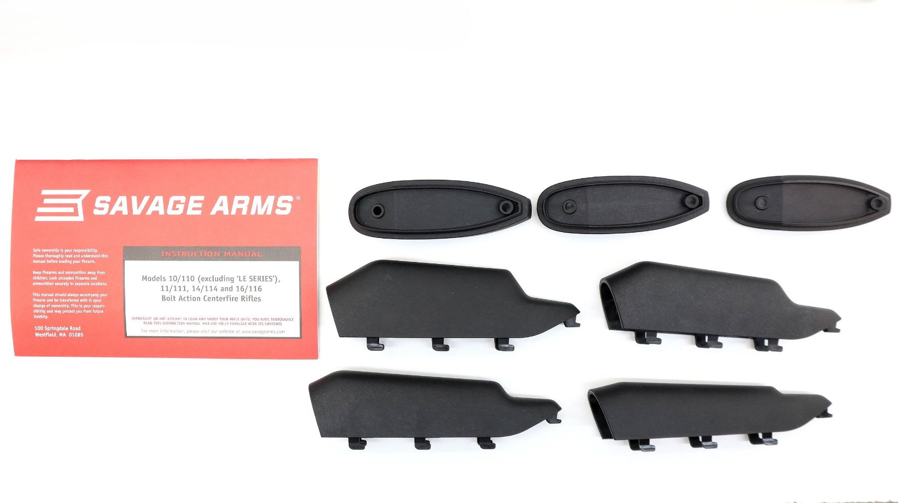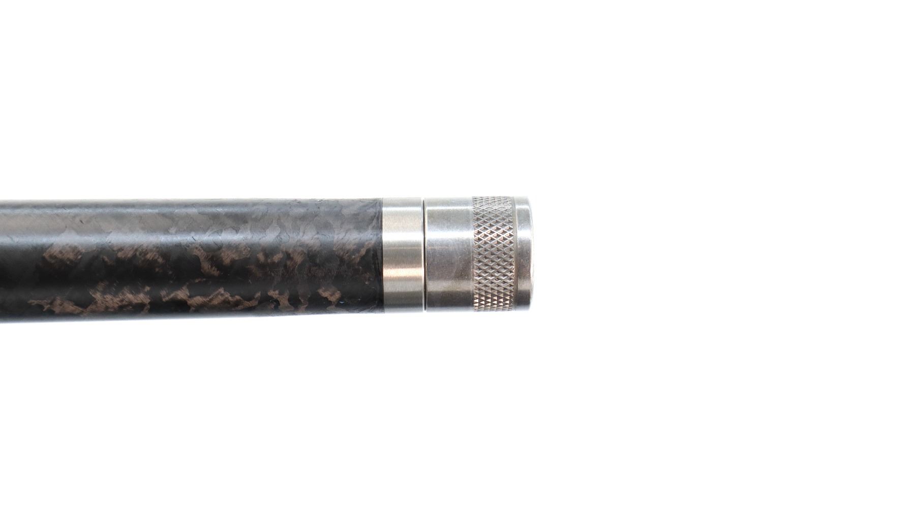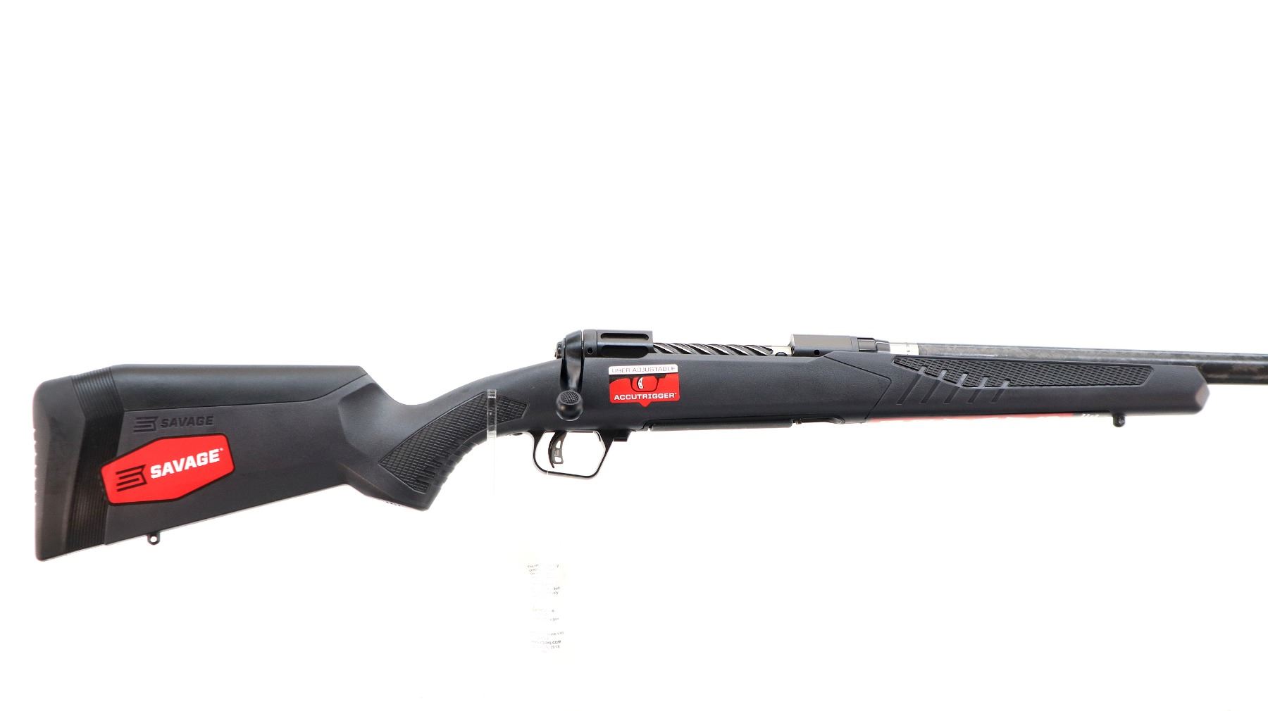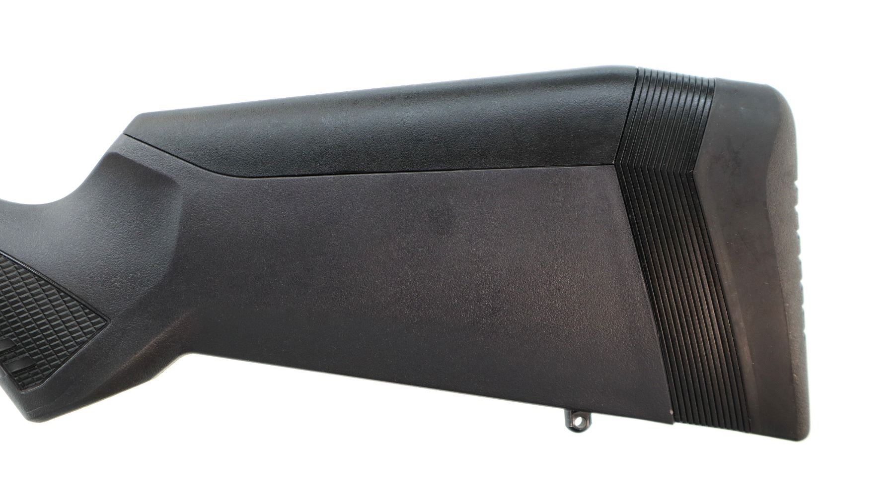 Main Description: No sights, stainless Carbon Fiber wrap barrel threaded at muzzle with cap, Melonite finish lightened receiver drilled and tapped with no plug screws installed, fluted bolt, checkered knob, tang safety. One piece black synthetic stock, checkered forearm and pistol grip panels, black rubber recoil pad, grip cap, accu trigger, swivel studs, retains factory stickers and hang tag. Accessories include: four replaceable combs with different heights, three different thickness recoil pad spacers.