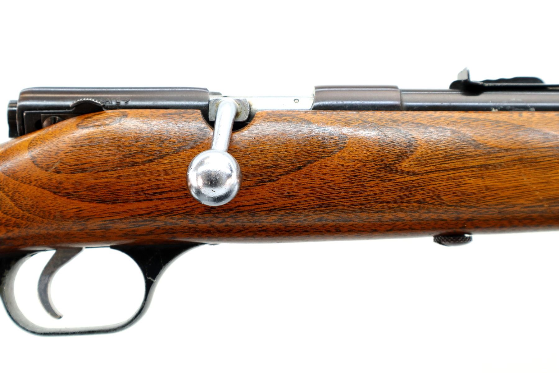 Main Description: Blade front sight, adjustable u notched rear sight, receiver drilled and tapped with plug screws installed, smooth bolt knob. One piece wood stock, pistol grip, grooved black polymer butt plate