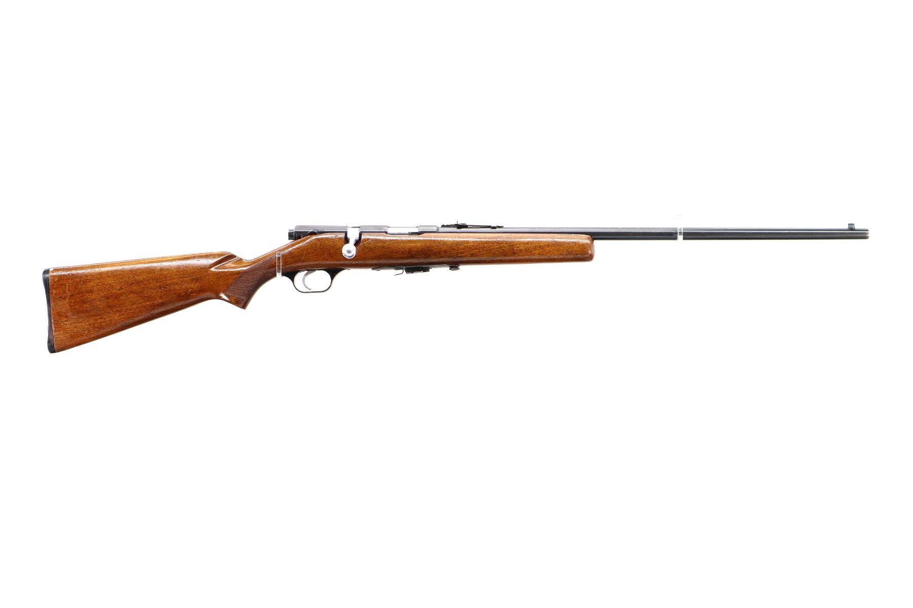 Main Description: Blade front sight, adjustable u notched rear sight, blued finish, receiver drilled and tapped with plug screws installed, smooth bolt knob. One piece wood stock, checkered pistol grip, grooved black polymer butt plate