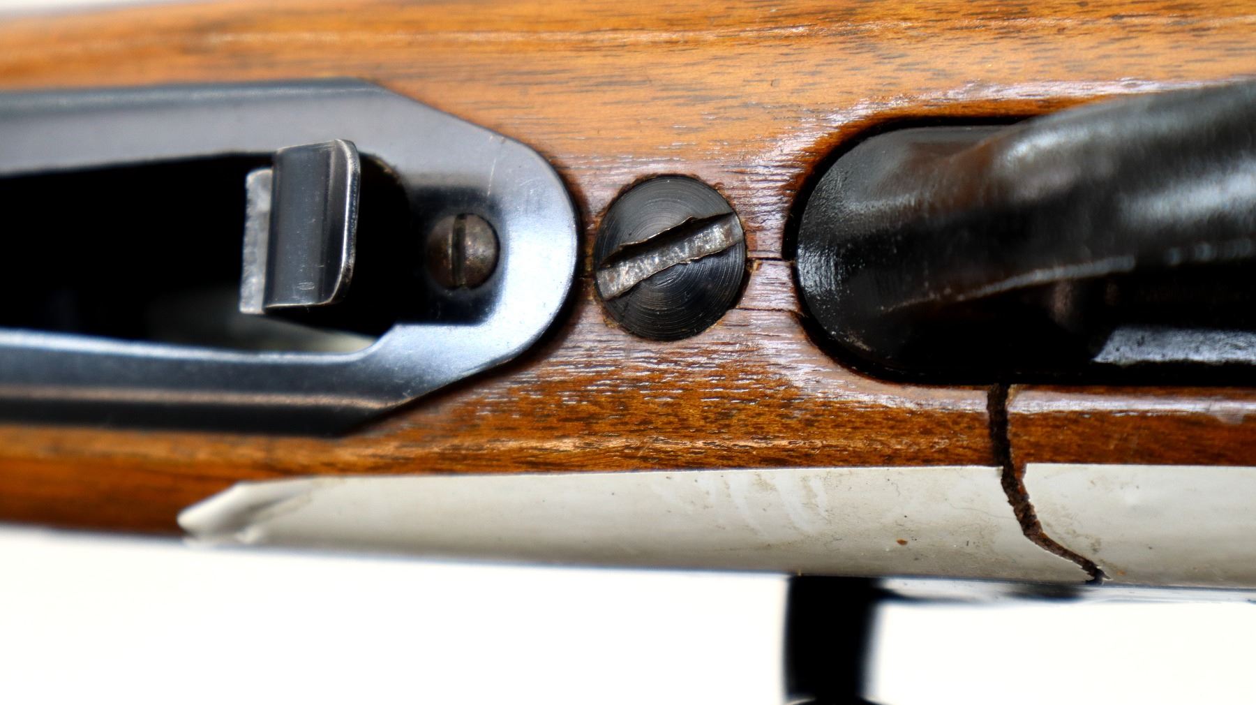 Wear: Metal finish shows some pitting, rust, scratches, handling marks and wear. Stocks show marks, scratches and wear.