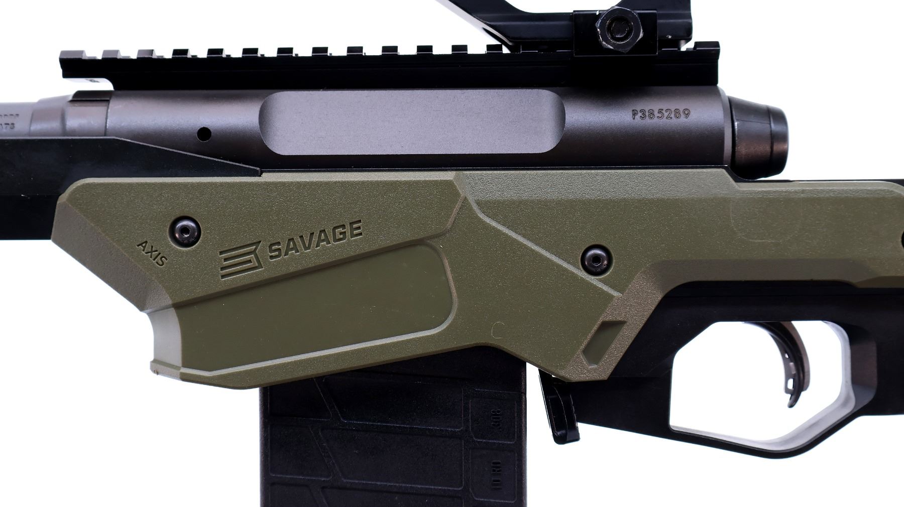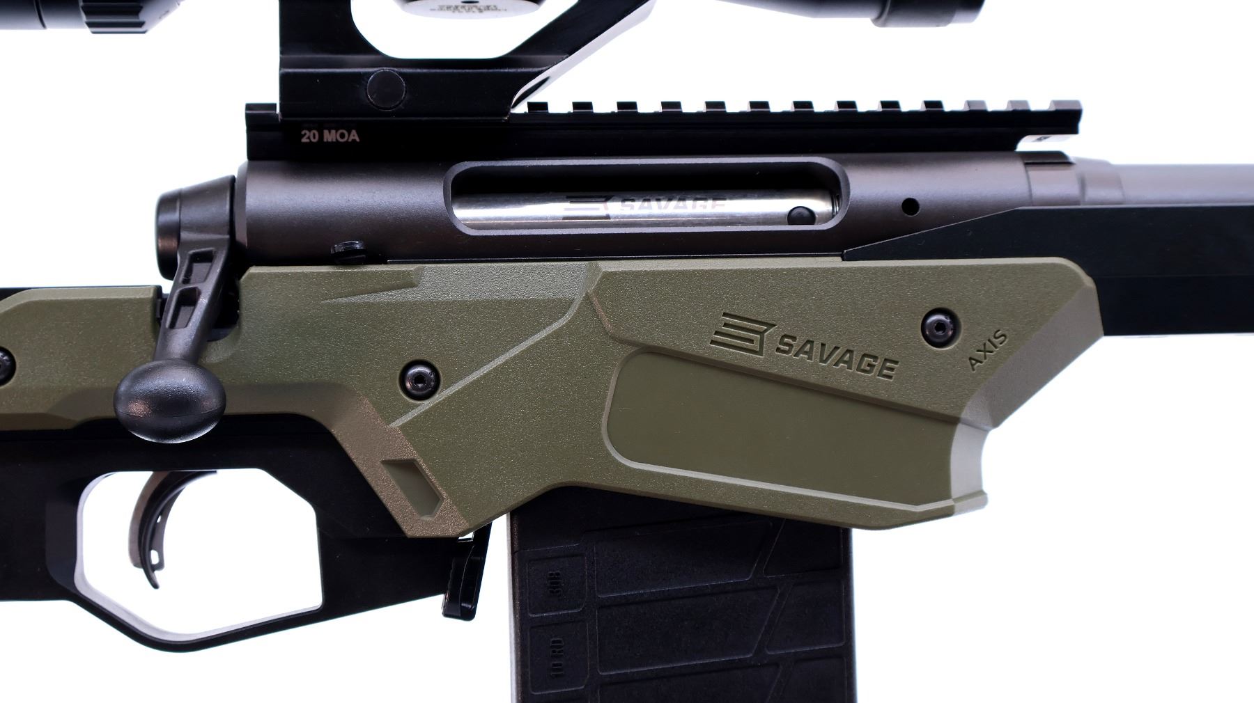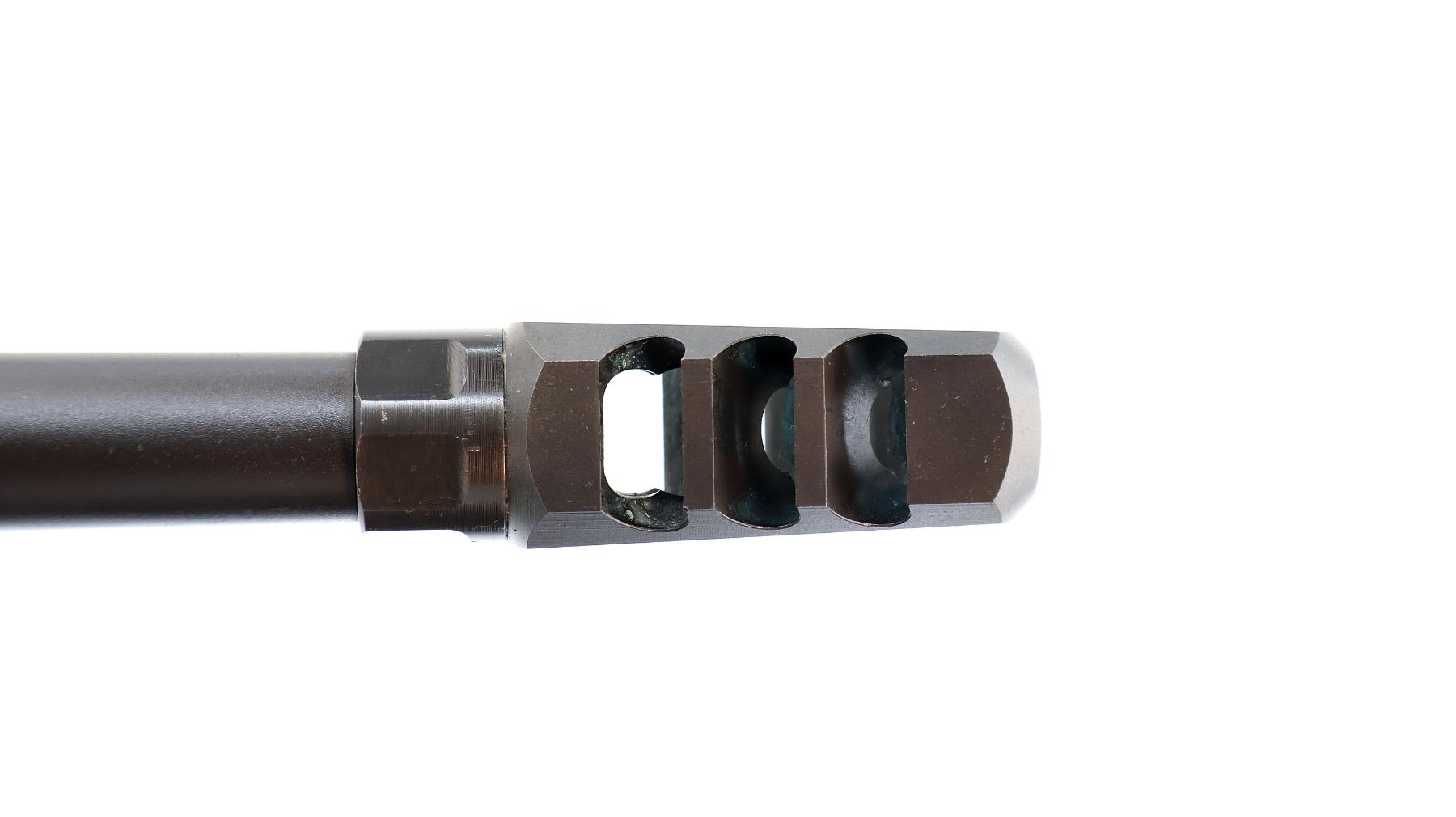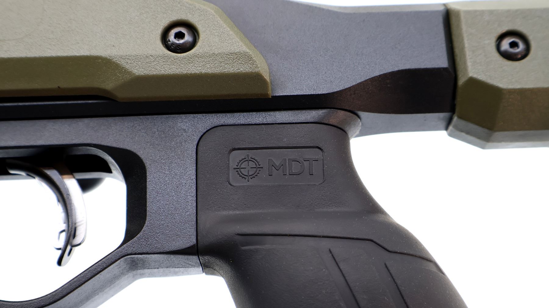 Main Description: No sights, Parkerized metal finish, heavy barrel threaded at muzzle with MDT brake installed, receiver drilled and tapped with one piece rail raised mount and Bushnell custom gold 1.5-6x32 scope installed, optics have clear droplet markings with range finding reticle, illumination functions, smooth bolt knob, tang safety. One piece black alloy ventilated forearm, ODG/Black Chasse, grooved pistol grip, adjustable comb, black rubber recoil pad with four spacers, accu trigger, ambi mag release, front swivel stud.