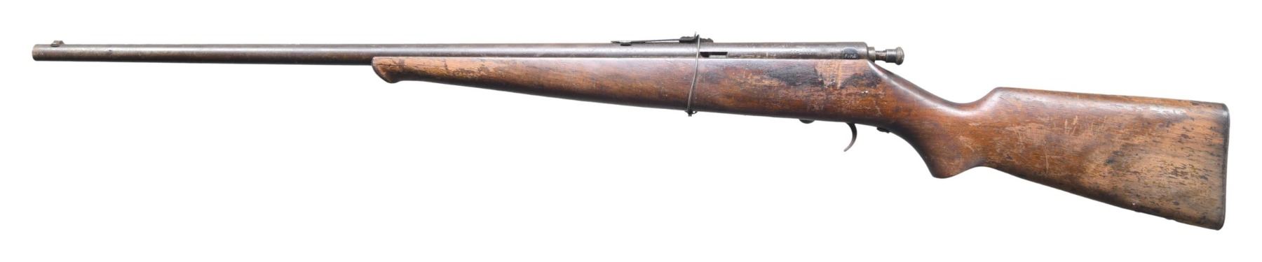 Cal. 22 LR. S# 110981. Bbl. 23". Sporting sights. Walnut stock w/ steel buttplate. MAGS: none. CONDITION: poor metal & wood finish. Poor bore. Missing triggerguard, floorplate & stock screw; bbl. head to stock by wire. (25-2843/MD). MODERN. $40-60.