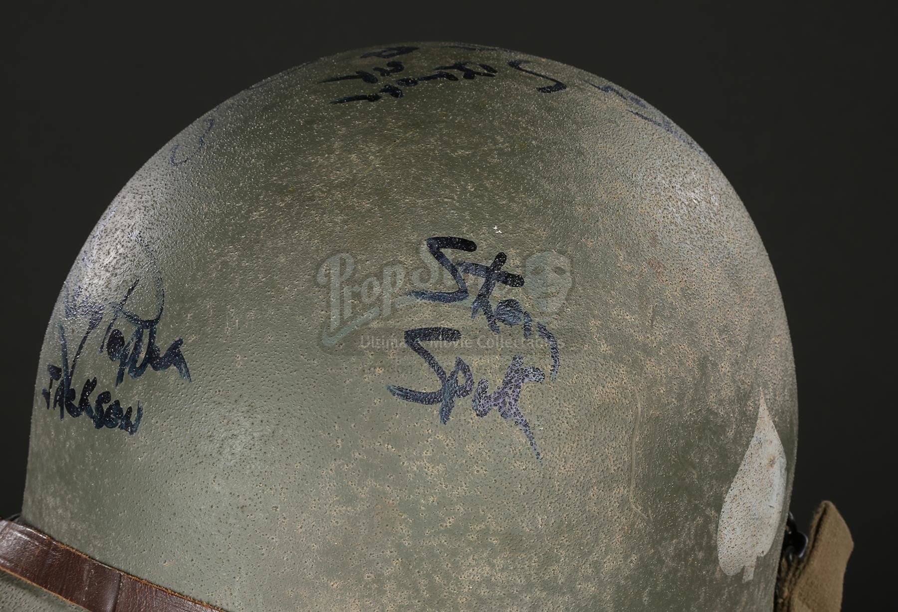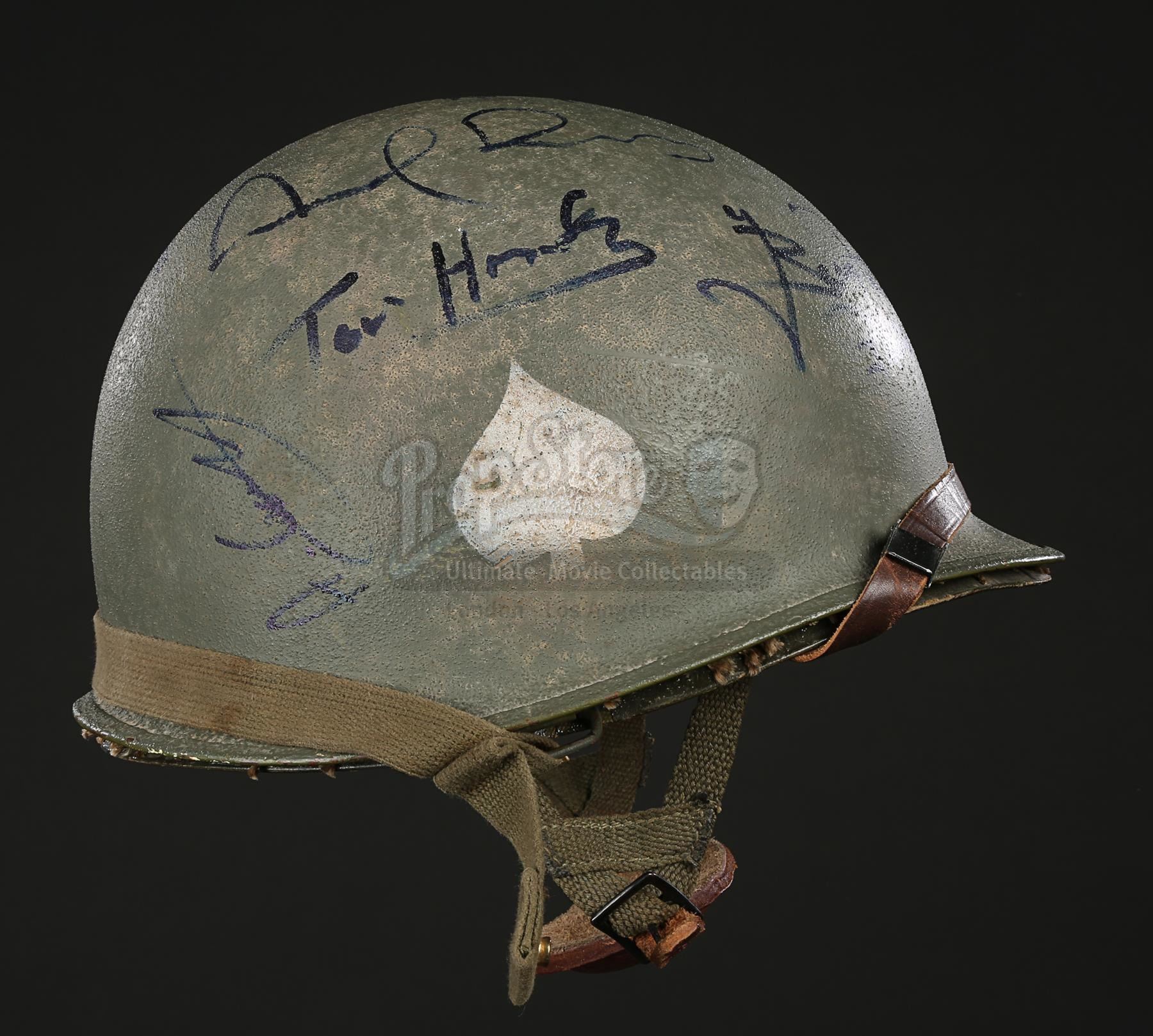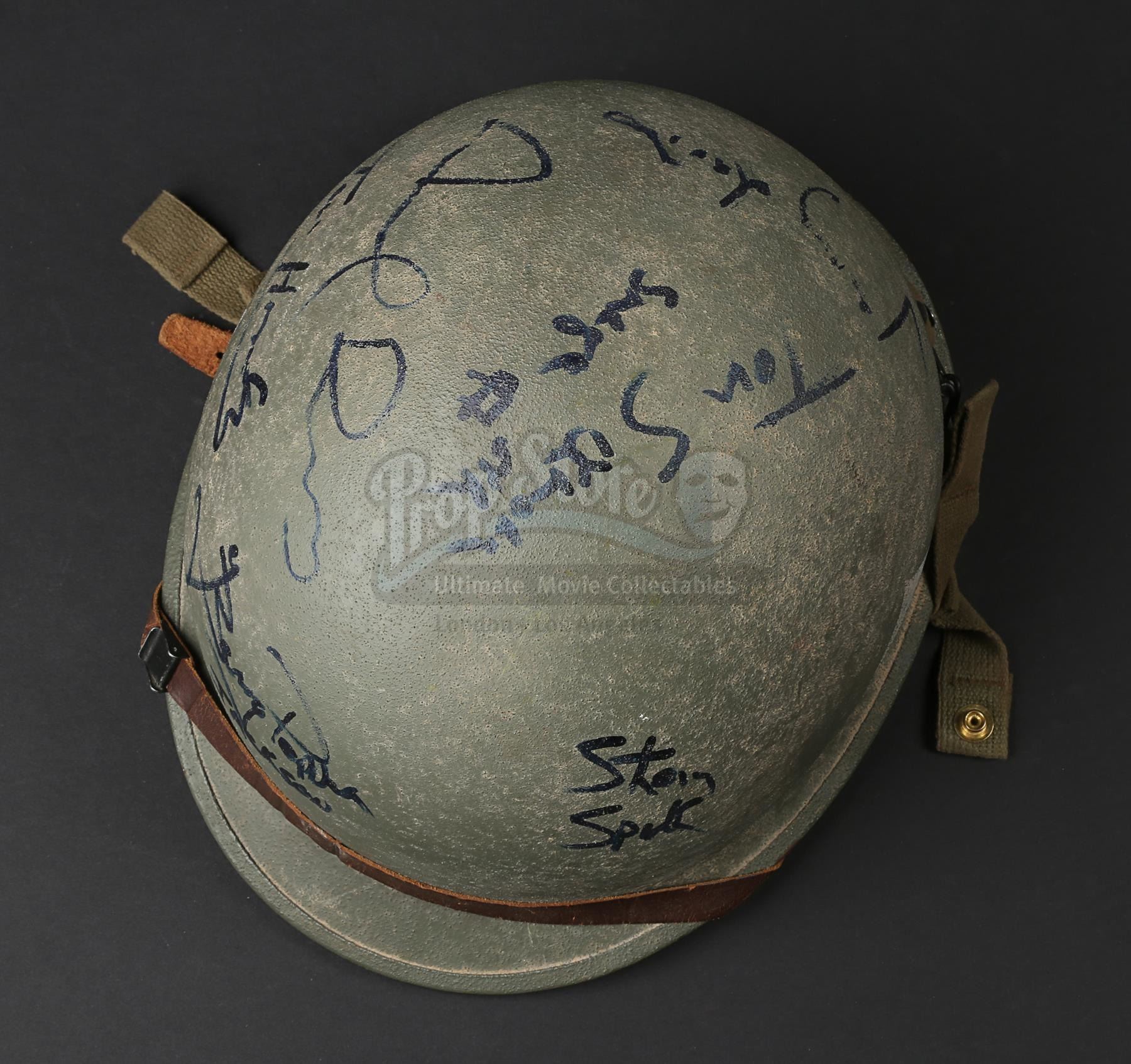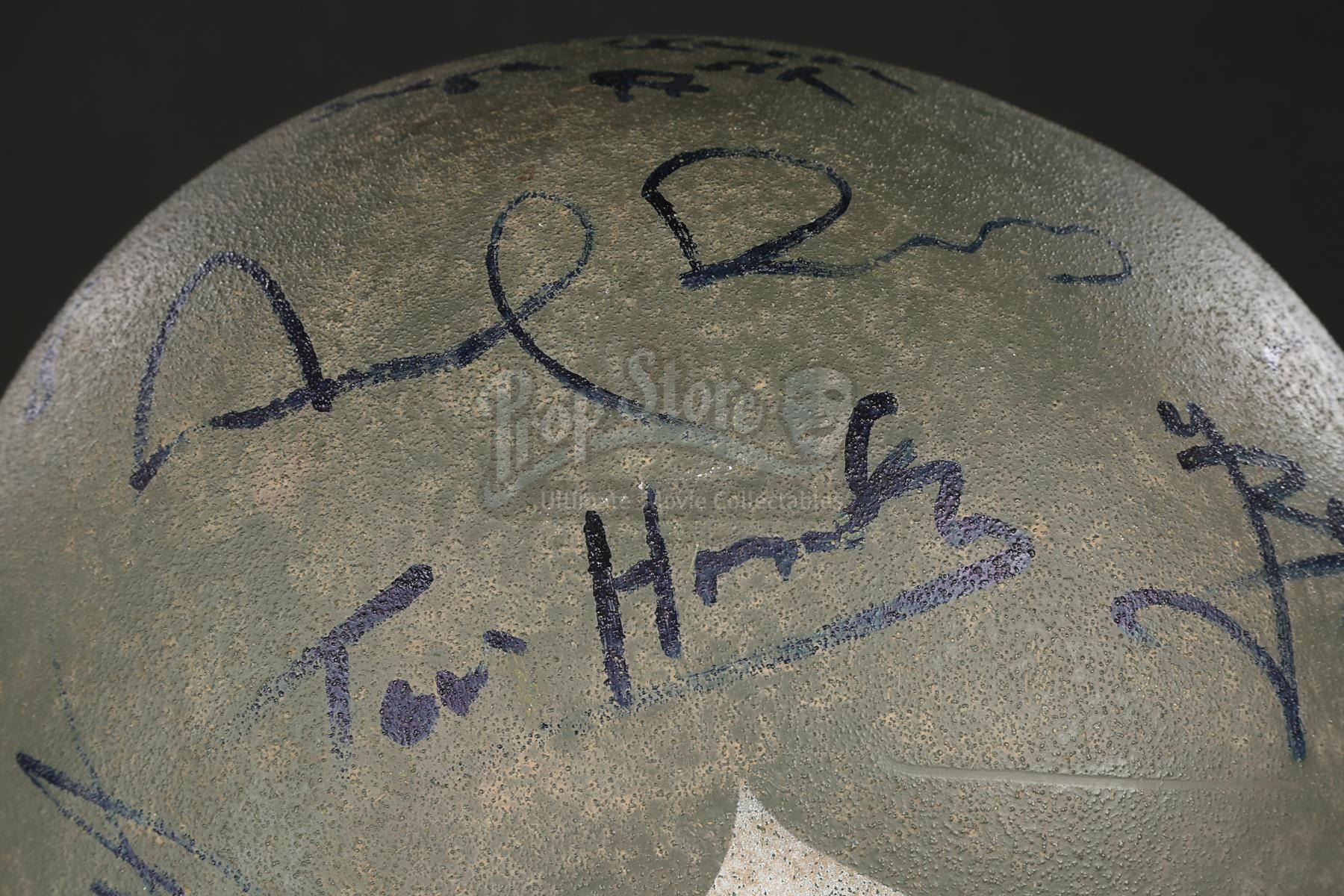 A cast-autographed paratrooper helmet from Steven Spielberg's World War II epic Saving Private Ryan. Members of the 101st Airborne, including Private James Ryan (Matt Damon), wore their helmets in battles throughout Normandy.