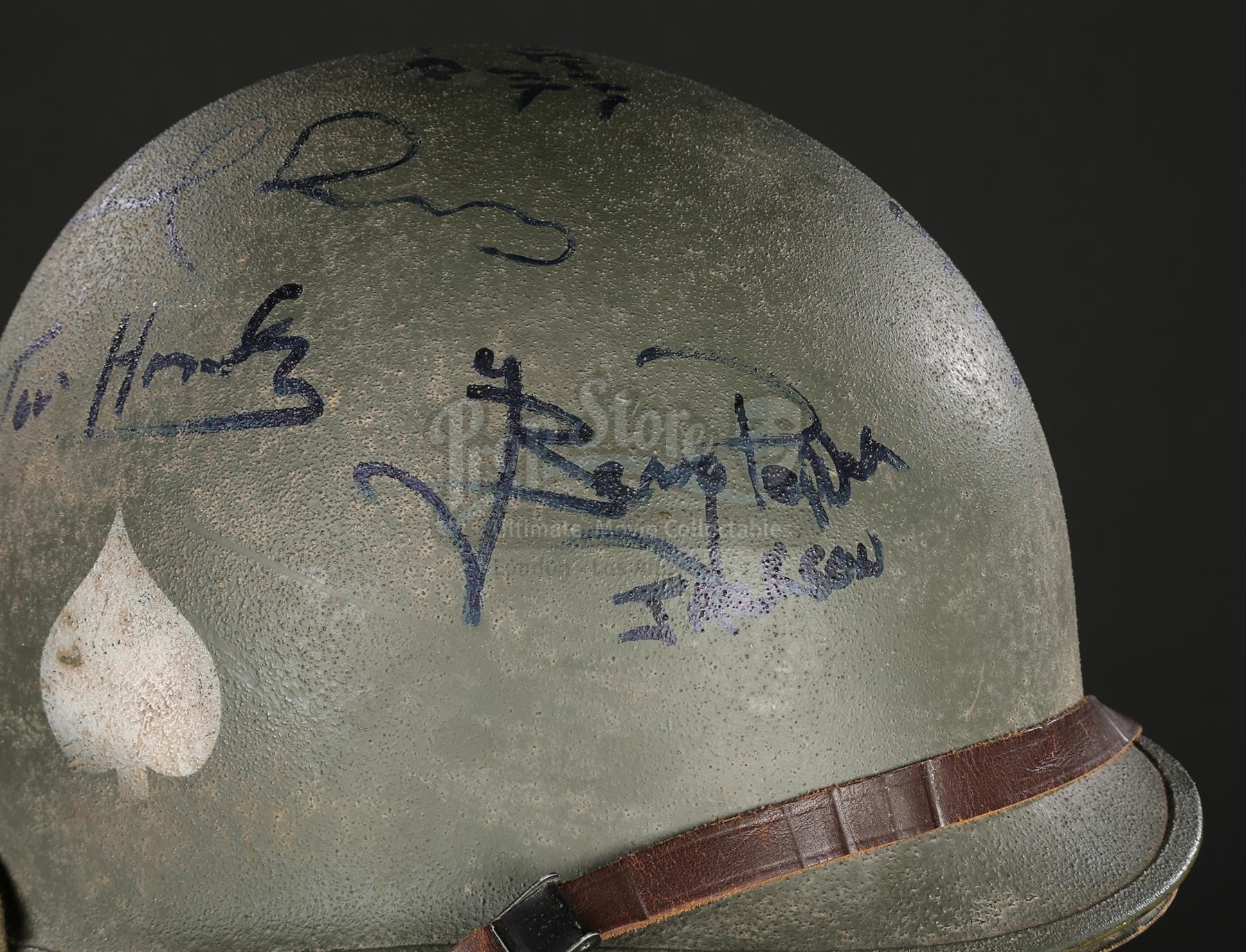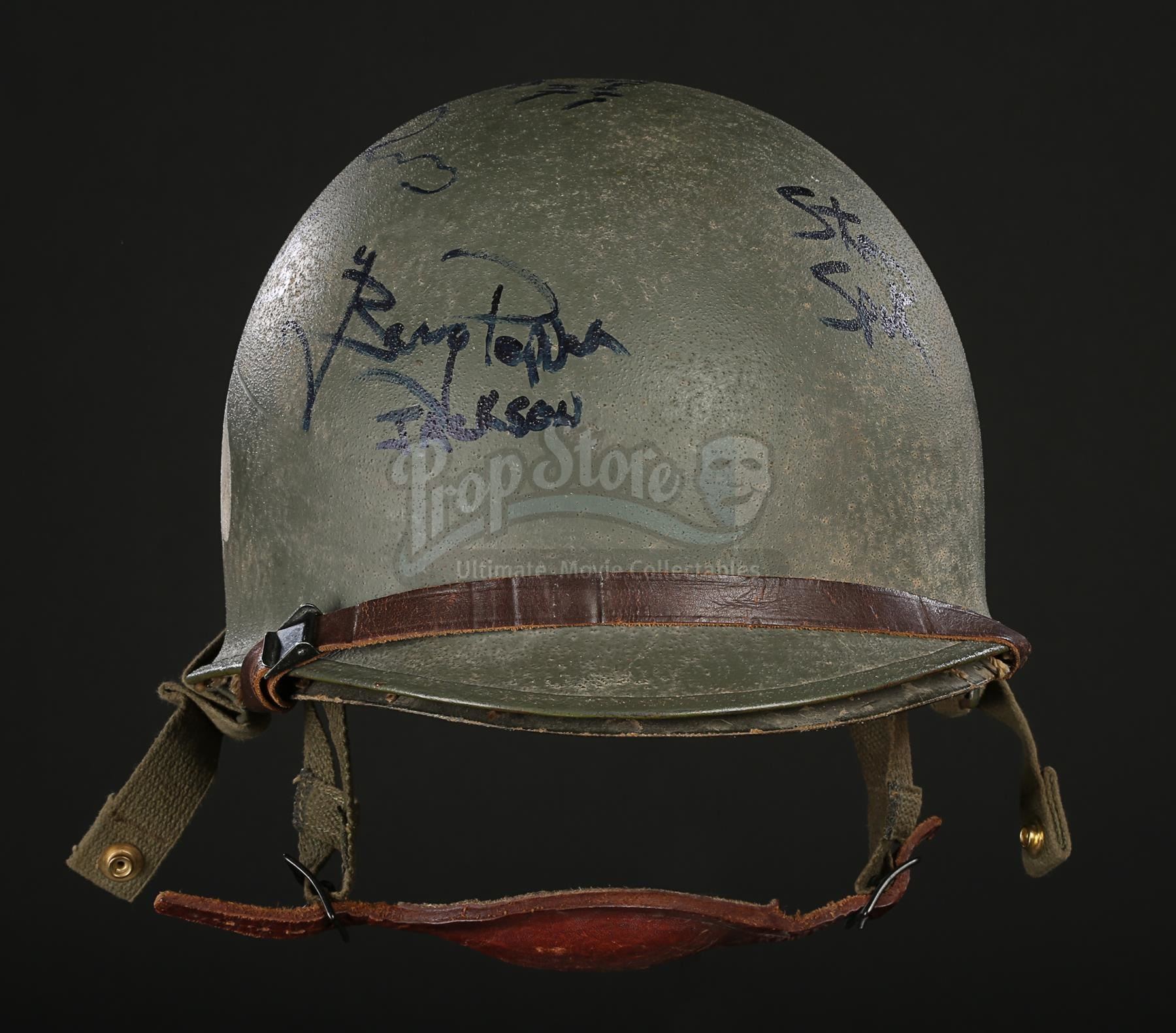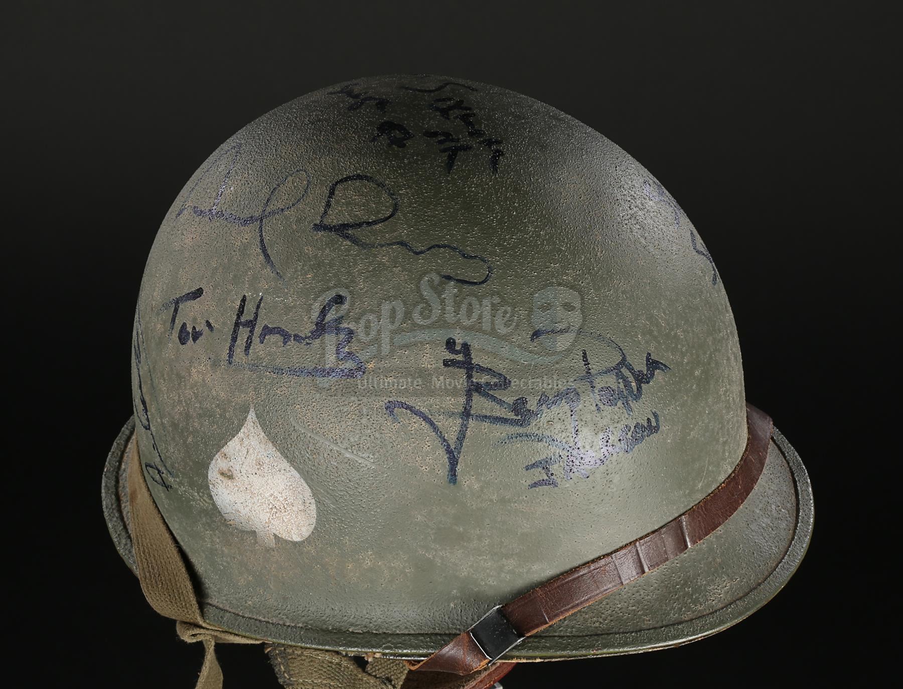 A cast-autographed paratrooper helmet from Steven Spielberg's World War II epic Saving Private Ryan. Members of the 101st Airborne, including Private James Ryan (Matt Damon), wore their helmets in battles throughout Normandy.