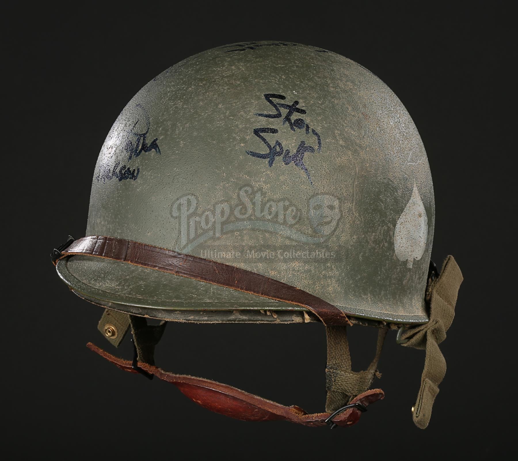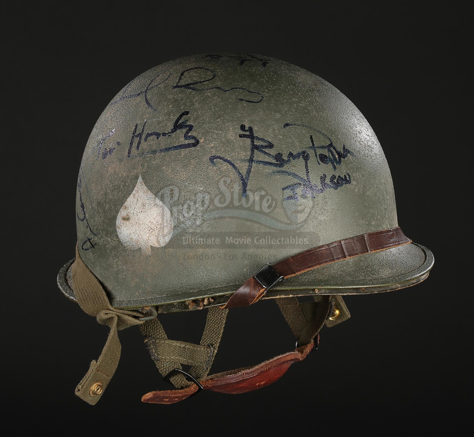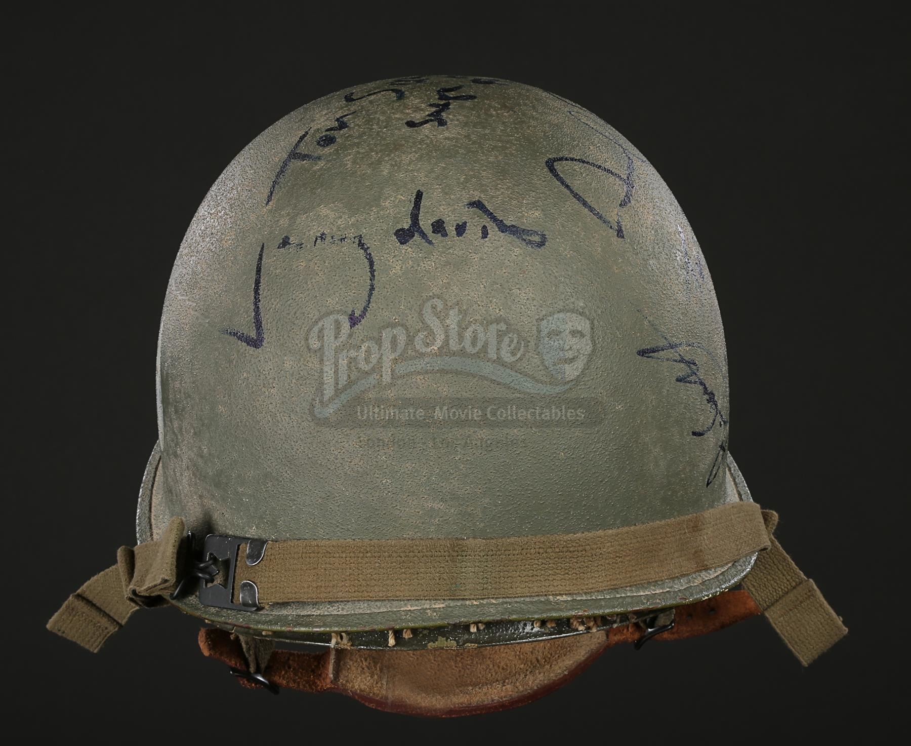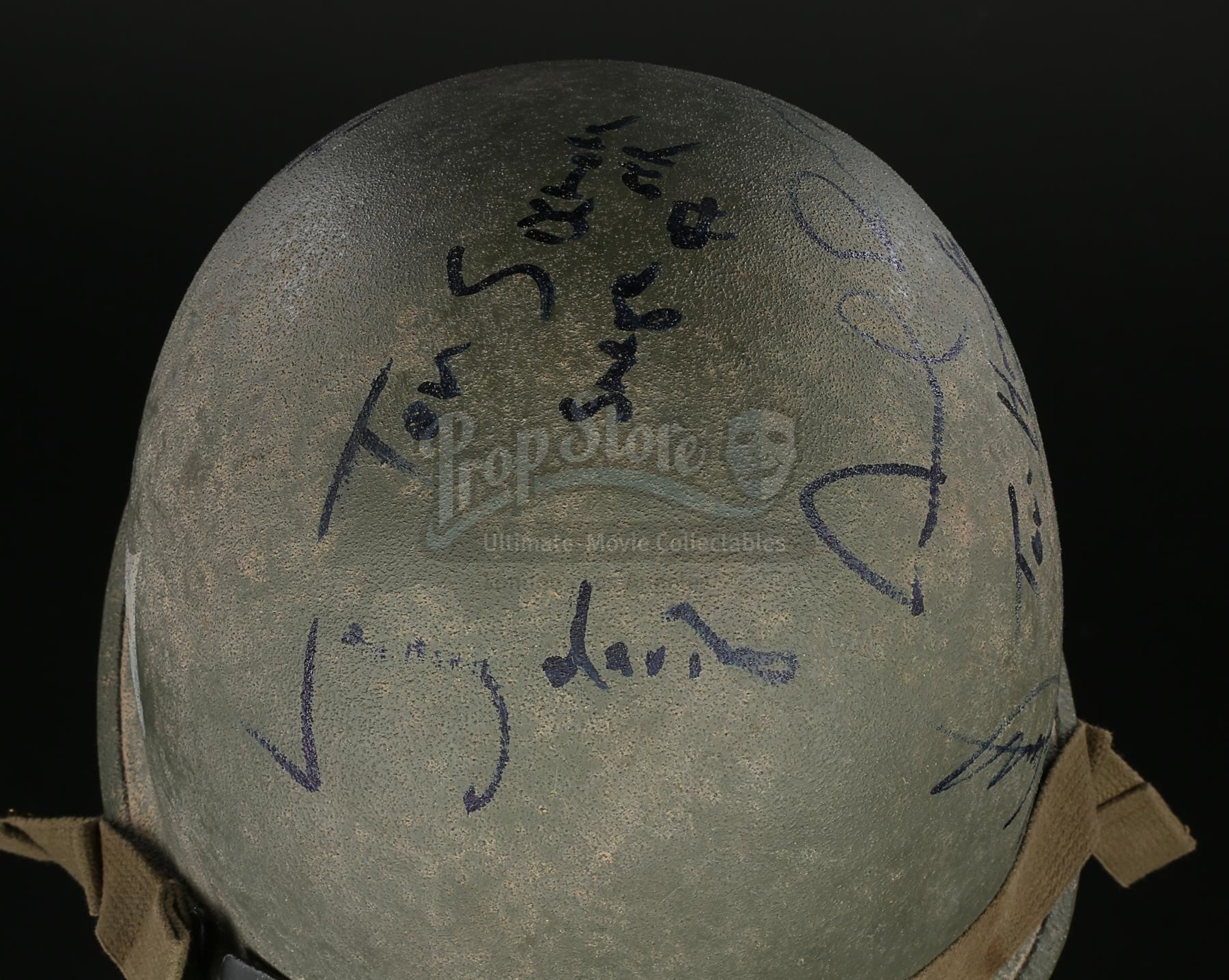 A cast-autographed paratrooper helmet from Steven Spielberg's World War II epic Saving Private Ryan. Members of the 101st Airborne, including Private James Ryan (Matt Damon), wore their helmets in battles throughout Normandy.