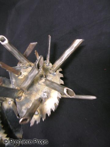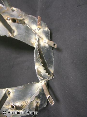 SAW 3D: The Final Chapter Trailer (2010) - This is the hero metal trap vest and cuffs that is seen in the trailer for the film. In the trailer, an audience is watching the movie in 3D when CGI versions of this trap come down over their heads and hands. This is the original, constructed of steel, that was scanned into the computer. It is very heavy and sharp. Made from real saw blades. (17 x 23 x 10). This item is oversized and will require additional shipping charges. Please email for shipping rates prior to bidding.