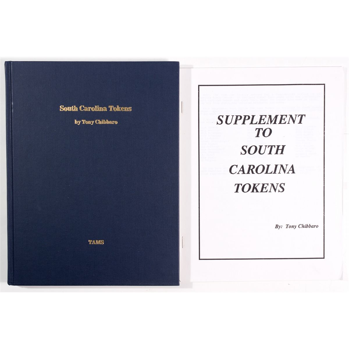 Chibbaro, Tony. David E. Schenkman, Ed. South Carolina Tokens. Includes "A Short History of the Use of Tokens in South Carolina, System Scrip, Catalog, Bibliography, and Street Names on South Carolina Tokens. With staple bound supplement to the book also by Chibarro. Token and Medal Society, Inc., Laker Mary, Florida, 1990. 262pp. Hardbound in blue cloth. 9" x 12". - Vinegar Collection