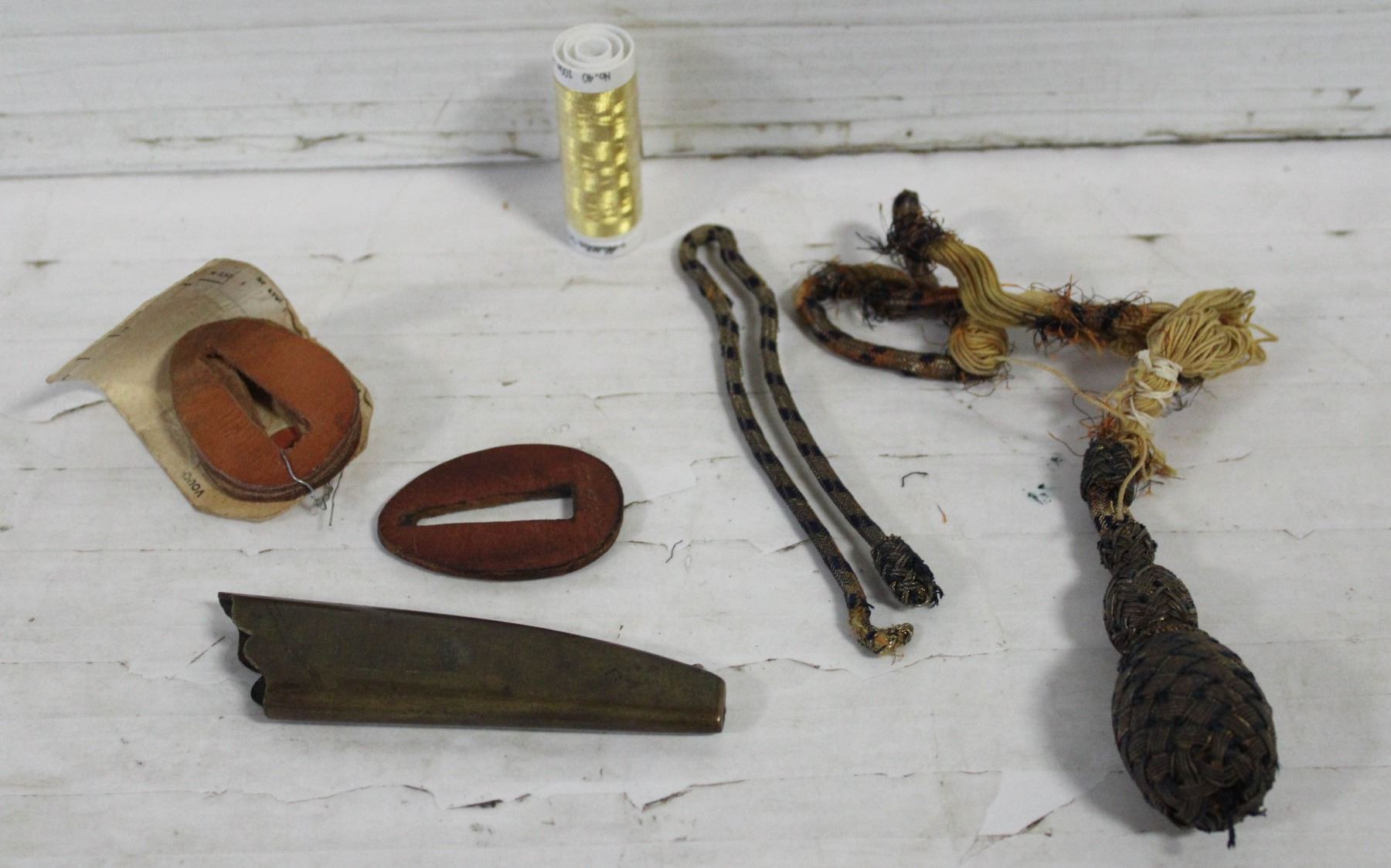 SCABBARD CHAPE, LEATHER WASHERS (3),