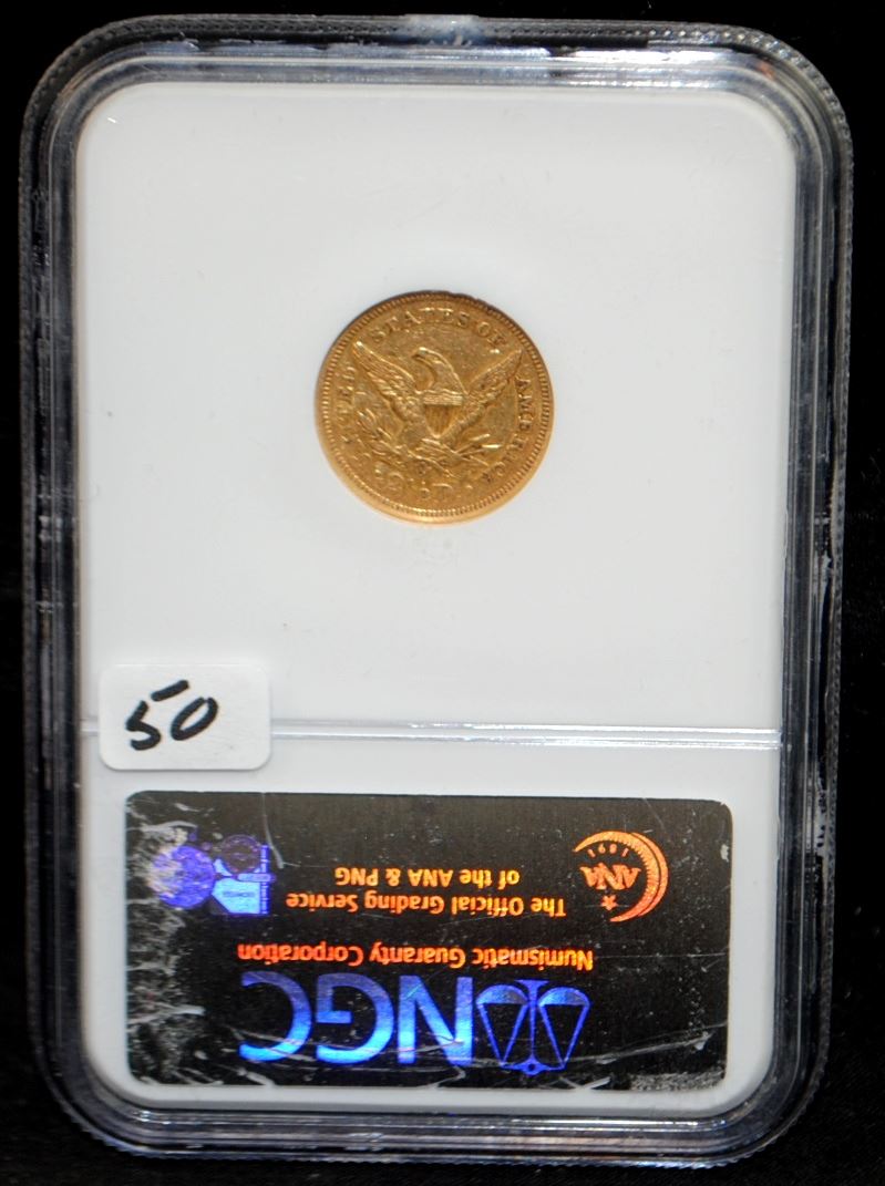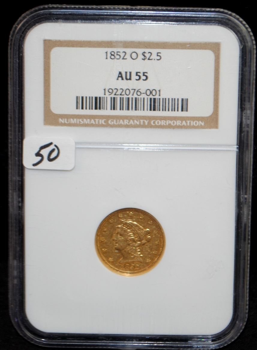 SCARCE 1852-0 $2 1/2 LIBERTY GOLD COIN - NGC AU55 (COIN WORLD TRENDS LISTS AN AU50 @ $975.00 AND AN AU58 @ $2,500.00)