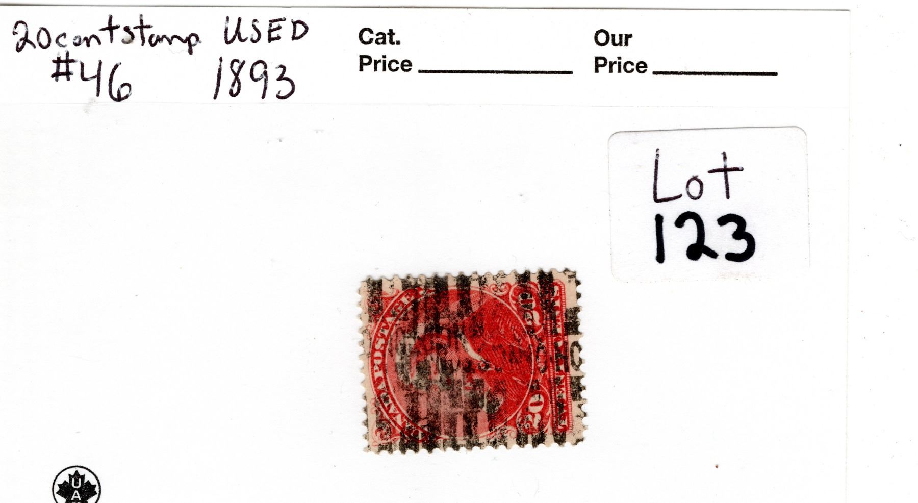 SCARCE 1893 USED 20 CENT STAMP #46 QUEEN VICTORIA STAMP