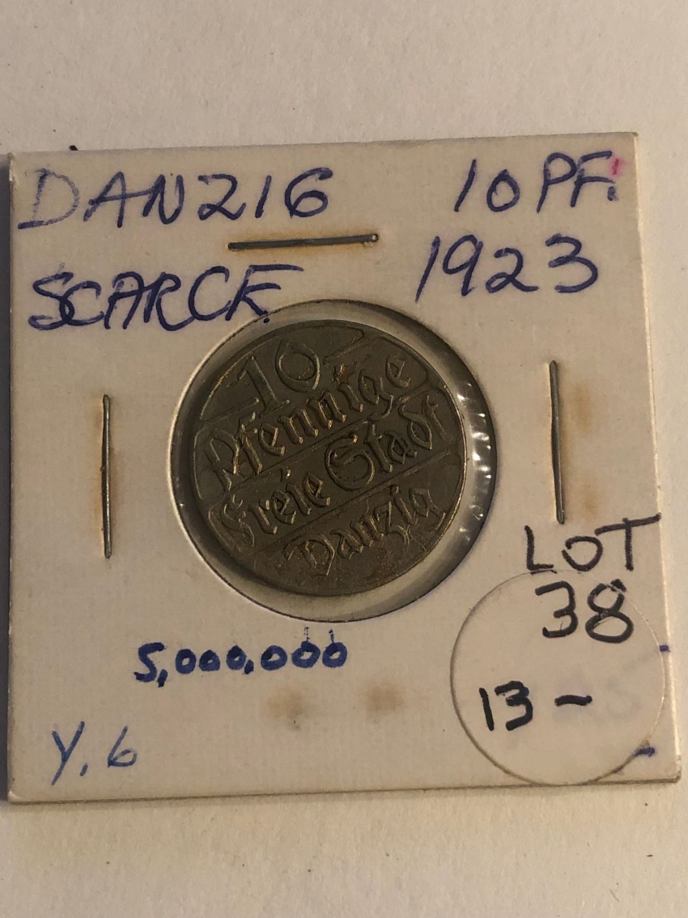 SCARCE 1923 Danzig 10 Pfennig Coin