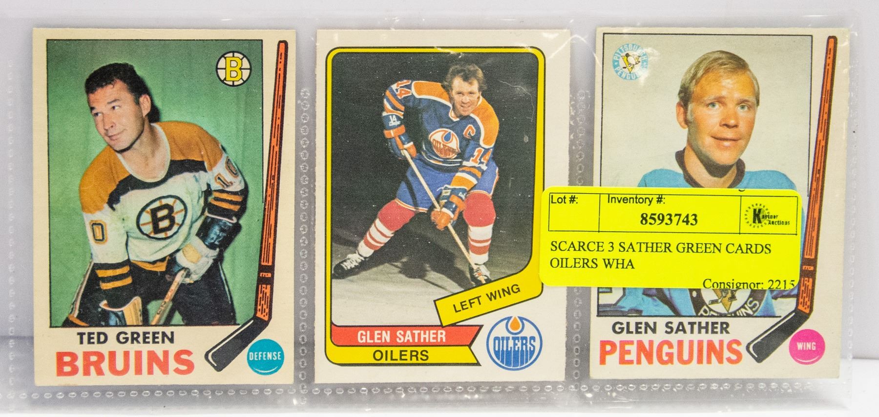 SCARCE 3 SATHER GREEN CARDS OILERS WHA