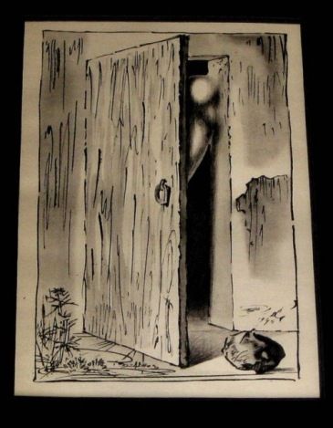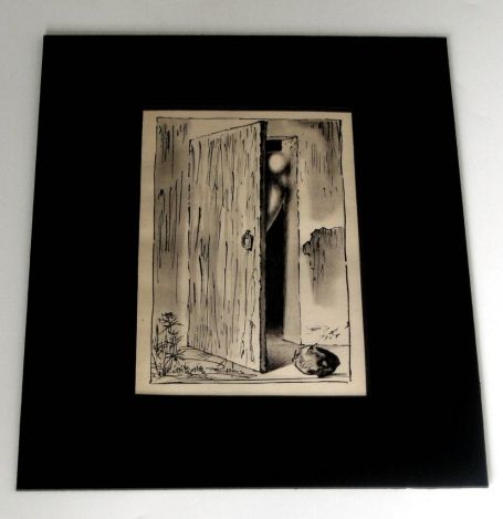 RARE ANTIQUE 1945 DALI LITHOGRAPH - PRINTED IN 1945 - SIGNED IN THE PLATE - BEAUTIFULLY FRAMED AND MATTED - IMAGE APPX 3.5" X 6" - FRAMED APPX 12" X 10" --
