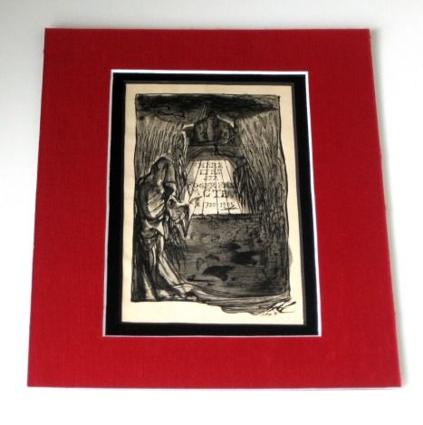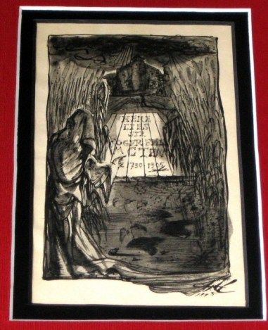 RARE ANTIQUE 1945 DALI LITHOGRAPH - GRIM REAPER - PRINTED IN 1945 - SIGNED IN THE PLATE - BEAUTIFULLY FRAMED AND DOUBLE MATTED - IMAGE APPX 3.5" X 6" - FRAMED APPX 12" X 10" --