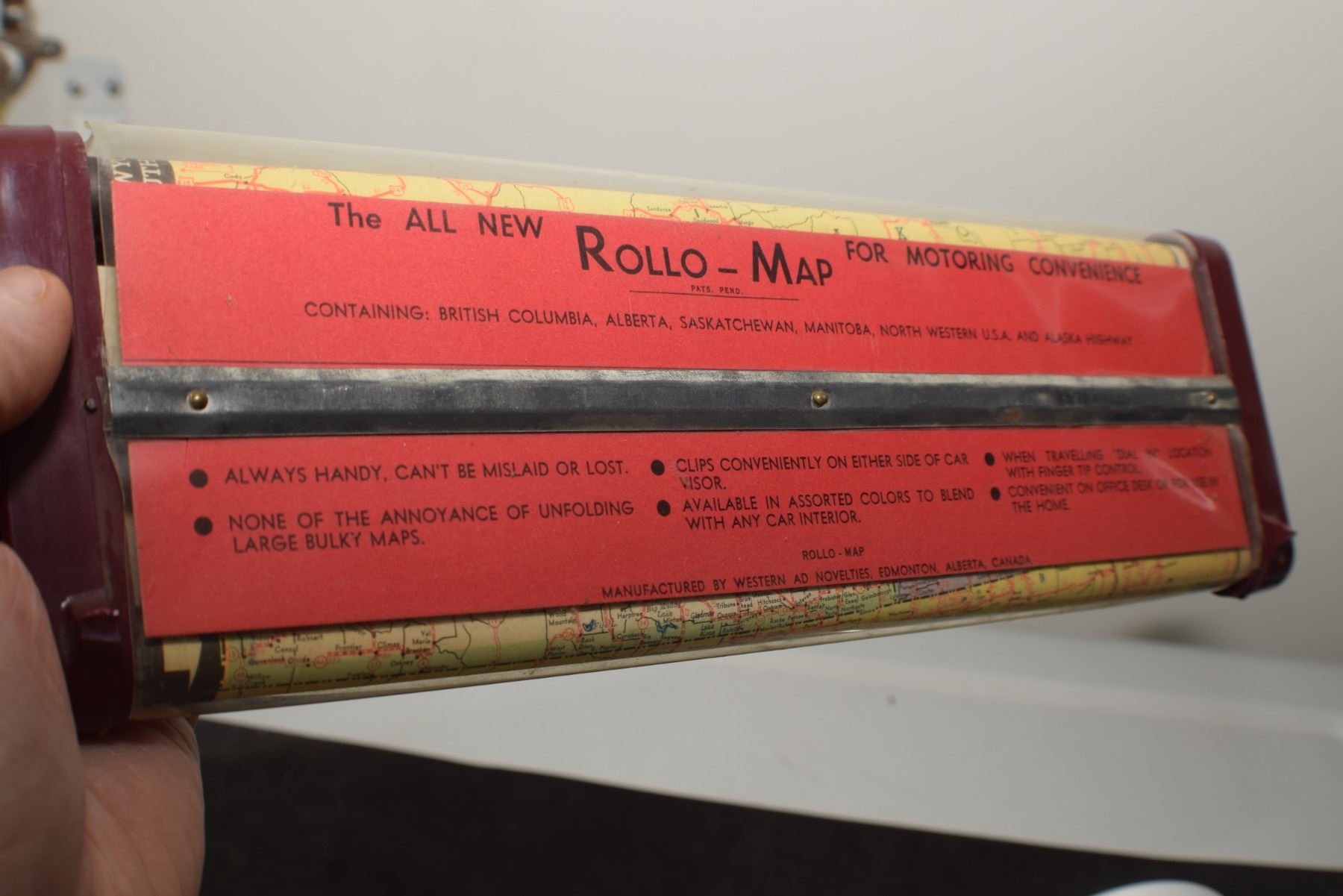 SCARCE ANTIQUE ROLL-A-MAP FOR SUN VISOR (CLIPS BROKEN)