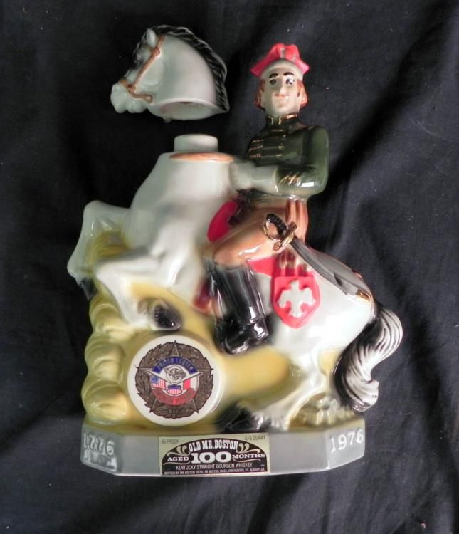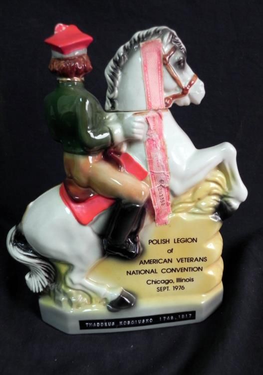 SCARCE THADDEUS KOSCIUSKI BEAM DECANTER-10" TALL-1976---OUTSTANDING CERAMIC OF KOSCIUSKO (1746-1817) IN UNIFORM, ON HORSEBACK COMMISSIONED BY THE POLISH LEGION OF AMERICAN VETERANS NATIONAL CONVENTION-CHICAGO-SEPT 1976