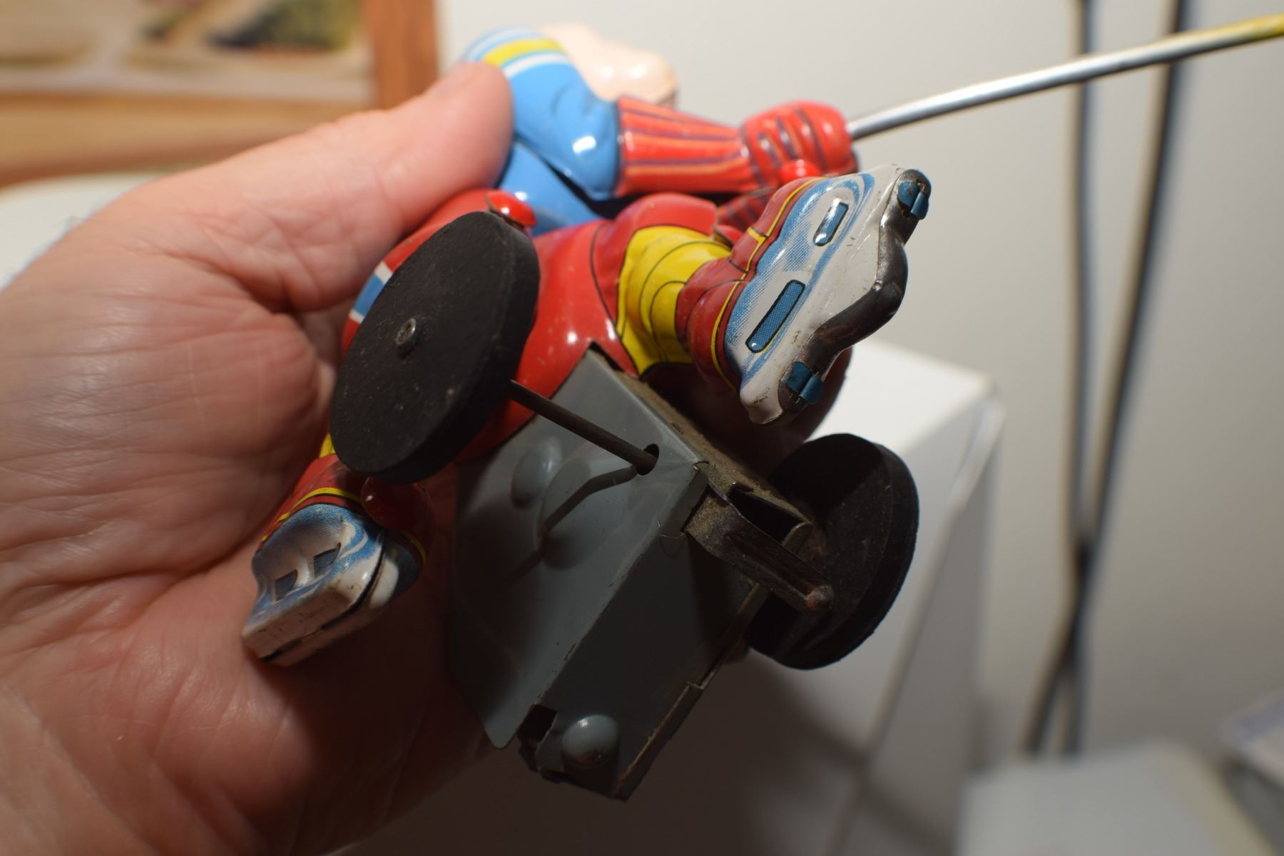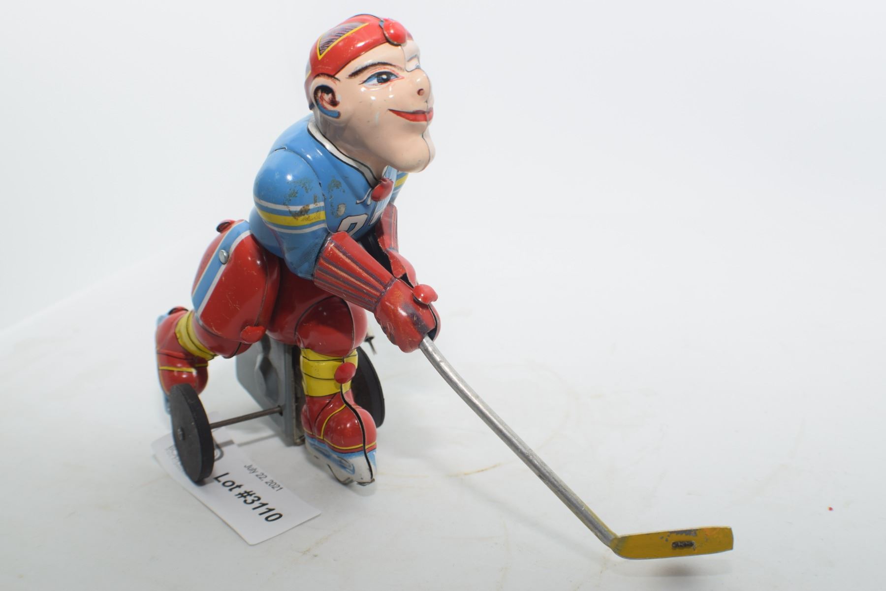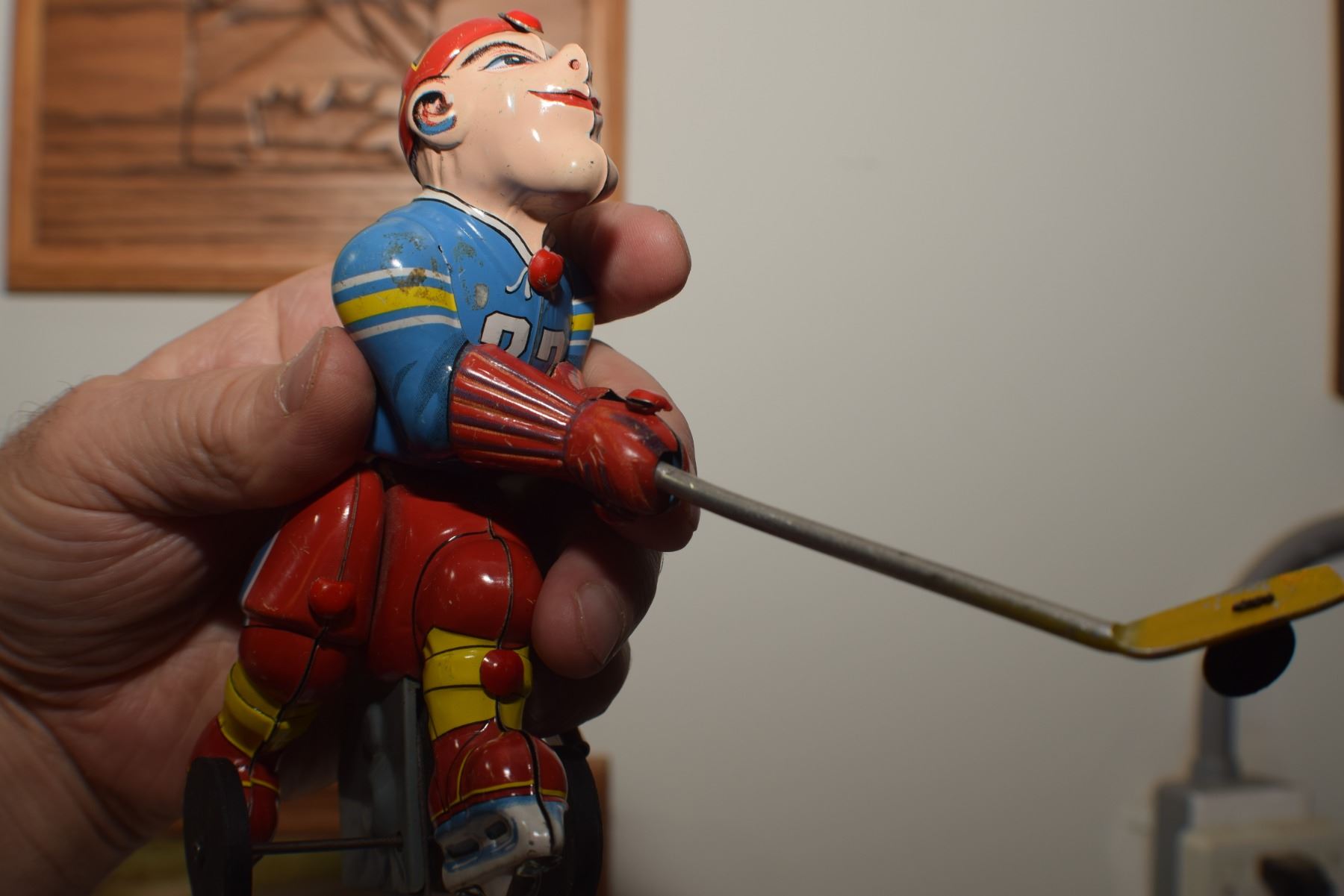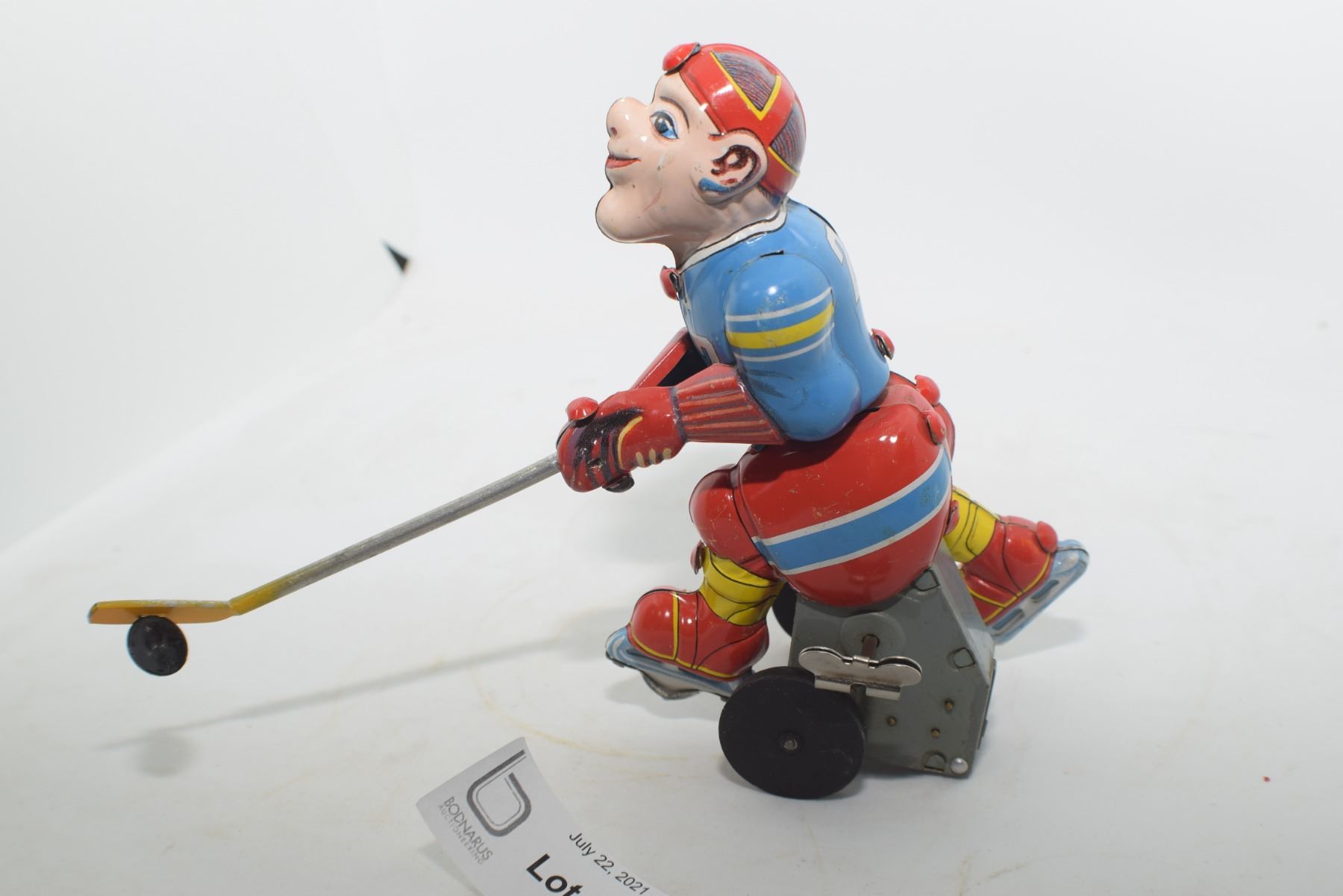 SCARCE VINTAGE NEAR MINT JAPAN LITHO TIN HOCKEY PLAYER WORKING TOY