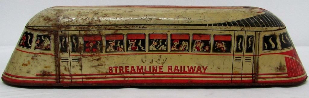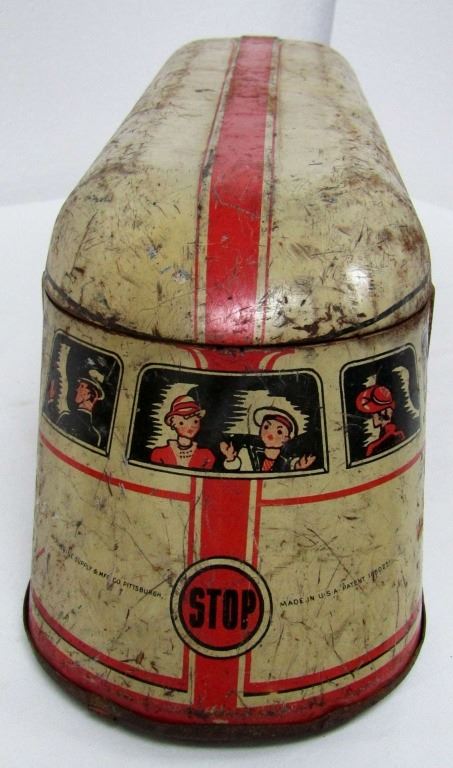 PULL TOY. WOLVERINE SUPPLY & MFG CO PITTSBURG. MADE IN USA. BELL STILL WORKS! HAS SCRATCHES AND SCRAPES IN THE PAINT. SURFACE RUST ON THE BOTTOM. ABOUT 17.5" LONG! THE NAME JUDY IS CARVED INTO EACH