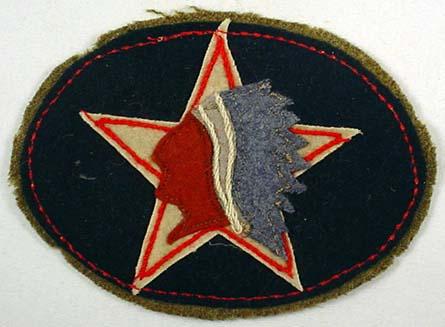 SCARCE WW1 US ARMY SECOND DIVISION SHOULDER PATCH - 5 Piece Felt Construction Sewn Onto an OD Green Wool Backing