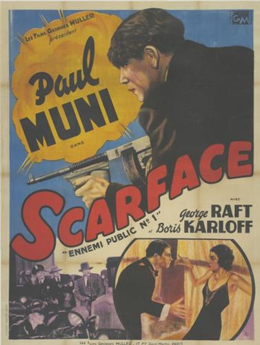 EL TERROR DEL HAMPA. SCARFACE (Cartel Francés). 1932. 155x118cm. (61x46,5in.). Litografía. B. Manchitas en los pliegues. Entelado.