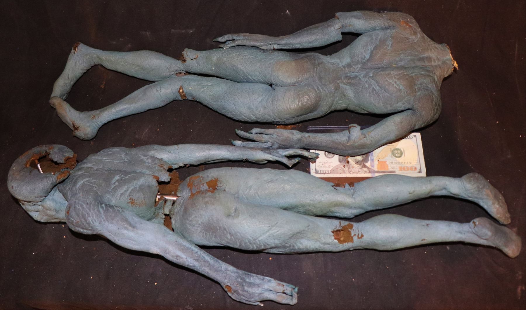 IMPORTANT NOTE! These are not crispy but they are rough and do have major issues due to some drying. The one with the head is separated at the waist and the left arm on the headless one is loose.