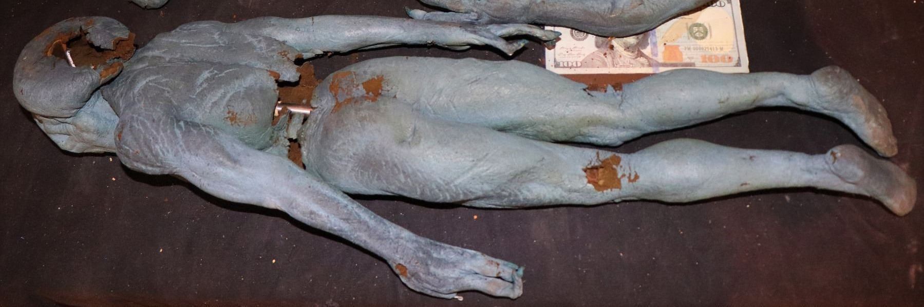 IMPORTANT NOTE! These are not crispy but they are rough and do have major issues due to some drying. "This one with the head is now separated at the waist".