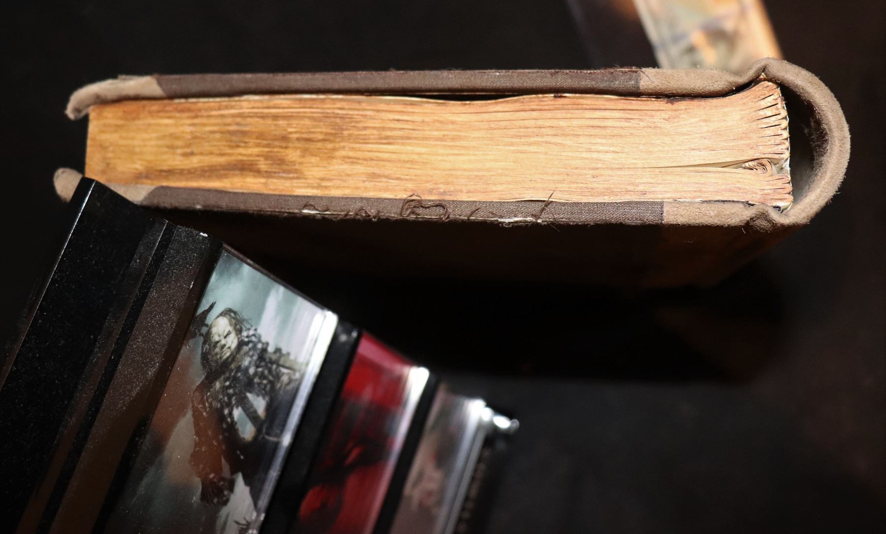 This book has been handled throughout and since production so there is a bit further wear than the shot posted here but I have Screen Matched this by several points of reference to the point of being irrefutable. The is the key prop from this film and a center piece in any collection!