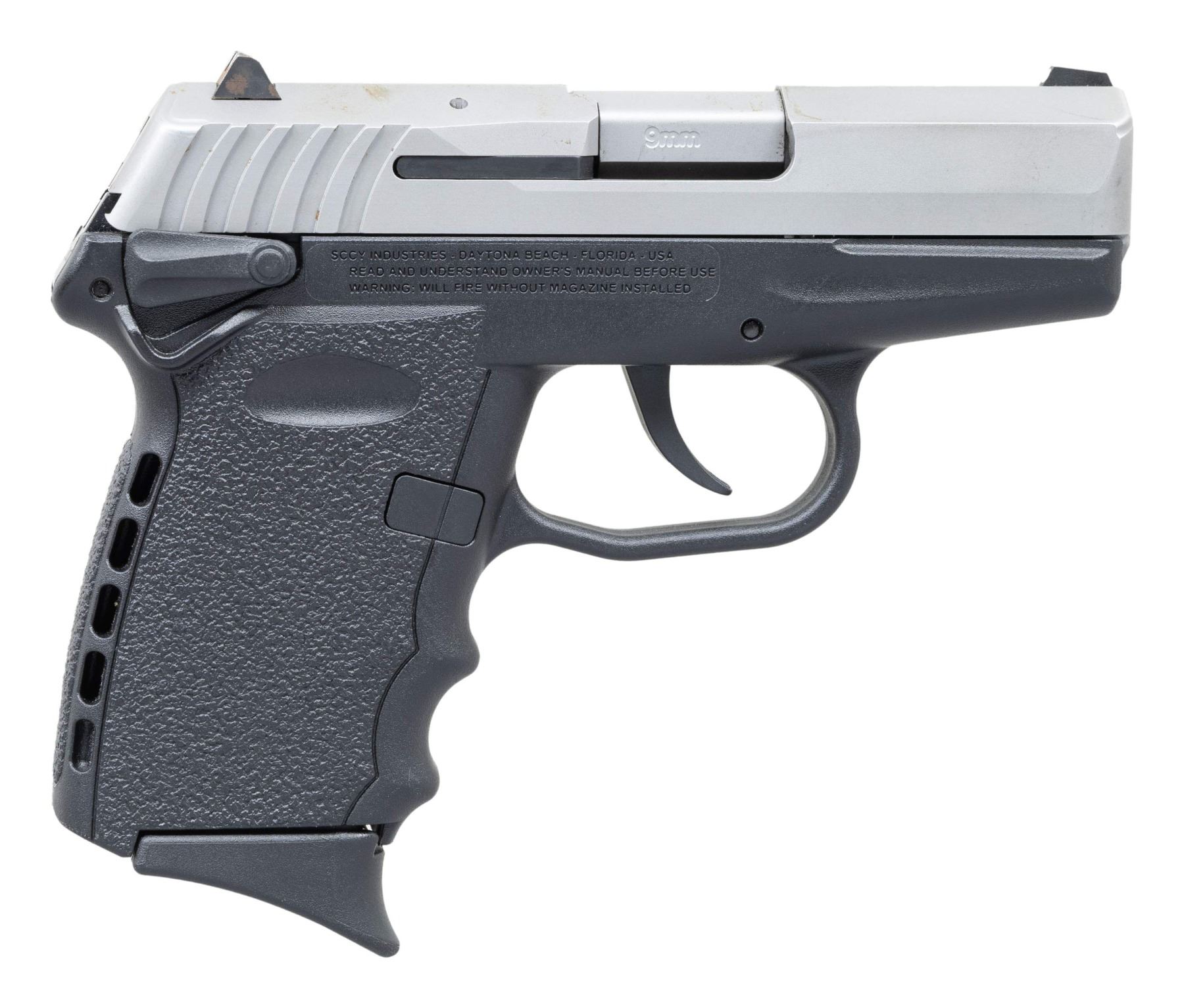 Cal. 9x19 (9mm Luger). S# 151903. Bbl. 3.1". Matte stainless slide with 3 dot sights. Black Zytel frame. MAGS: 2 - 10 rd. UNATTACHED ACCESSORIES: matching box containing mag. bases & 2 keys. CONDITION: good to very good slide finish with spots of brown patina. Very good frame. Good strong bore with fouling. (25-3991/MD). MODERN. $250-350.