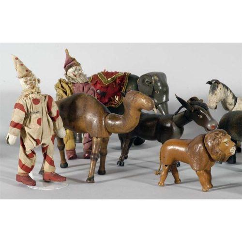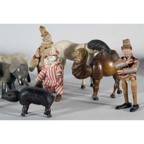 SCHOENHUT CIRCUS GROUPING 15 various animals and figures, CONDITION: mixed with some repairs and replacements, PACKING AND SHIPPING: Fairfield Auction will provide packing and shipping (excluding insurance) within the Continental U.S. for $40. Buyer is welcome to use any other service or pick-up at the gallery.