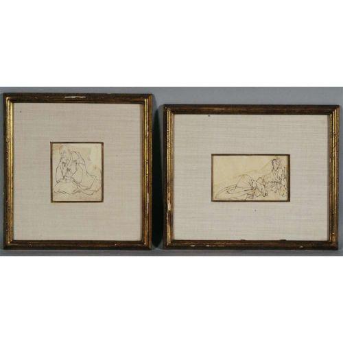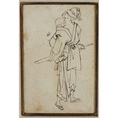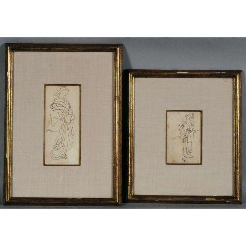 1 SCHOOL OF HOKUSAI, group of (4) ink drawings, largest 7"x3", unsigned, two cropped within matting, CONDITION REPORT: Toning, stains, foxing. PACKING AND SHIPPING (excluding insurance) by Fairfield Auction to points within the Continental U.S.A. and Canada (all other international must be handled by 3rd party shipper) $40.