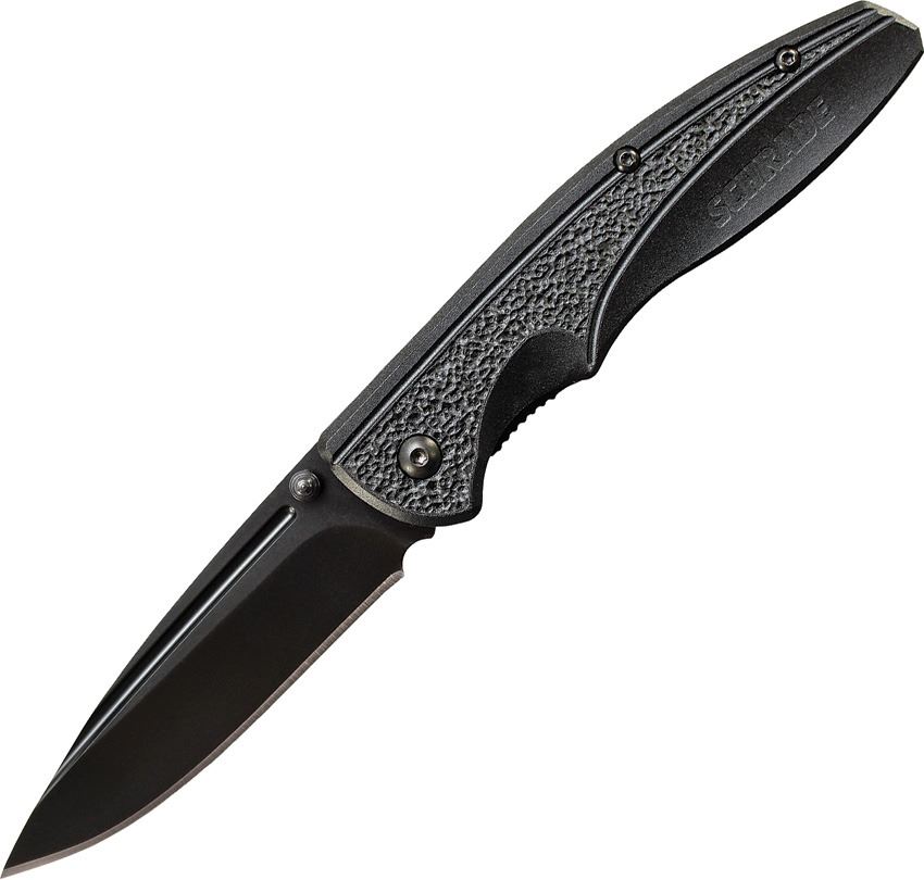 4 1/2" closed. 3 1/4" black finish 9Cr18MoV stainless drop point blade with dual thumb studs. Textured black aluminum handles. Black finish stainless pocket clip