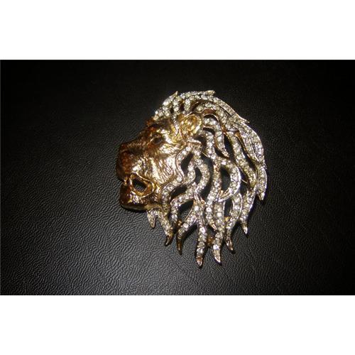Large lion pin with layers of rhinestones depicting hair.