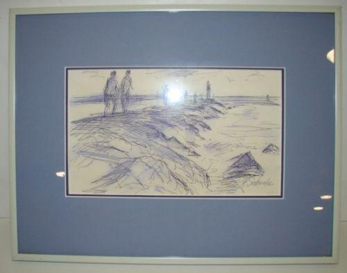HOWARD SCHROEDER DELAWARE PEN & INK SKETCH. Depicts the north jetty at Indian River in Delaware. Signed in lower right "H. Schroeder". 13.125" x 10.25" framed. 8.375" x 5" sight.