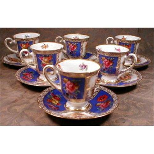 <tr><td>Title:SCHUMANN Dresden DEMITASSE Set 6 Cups Saucers</td></tr>