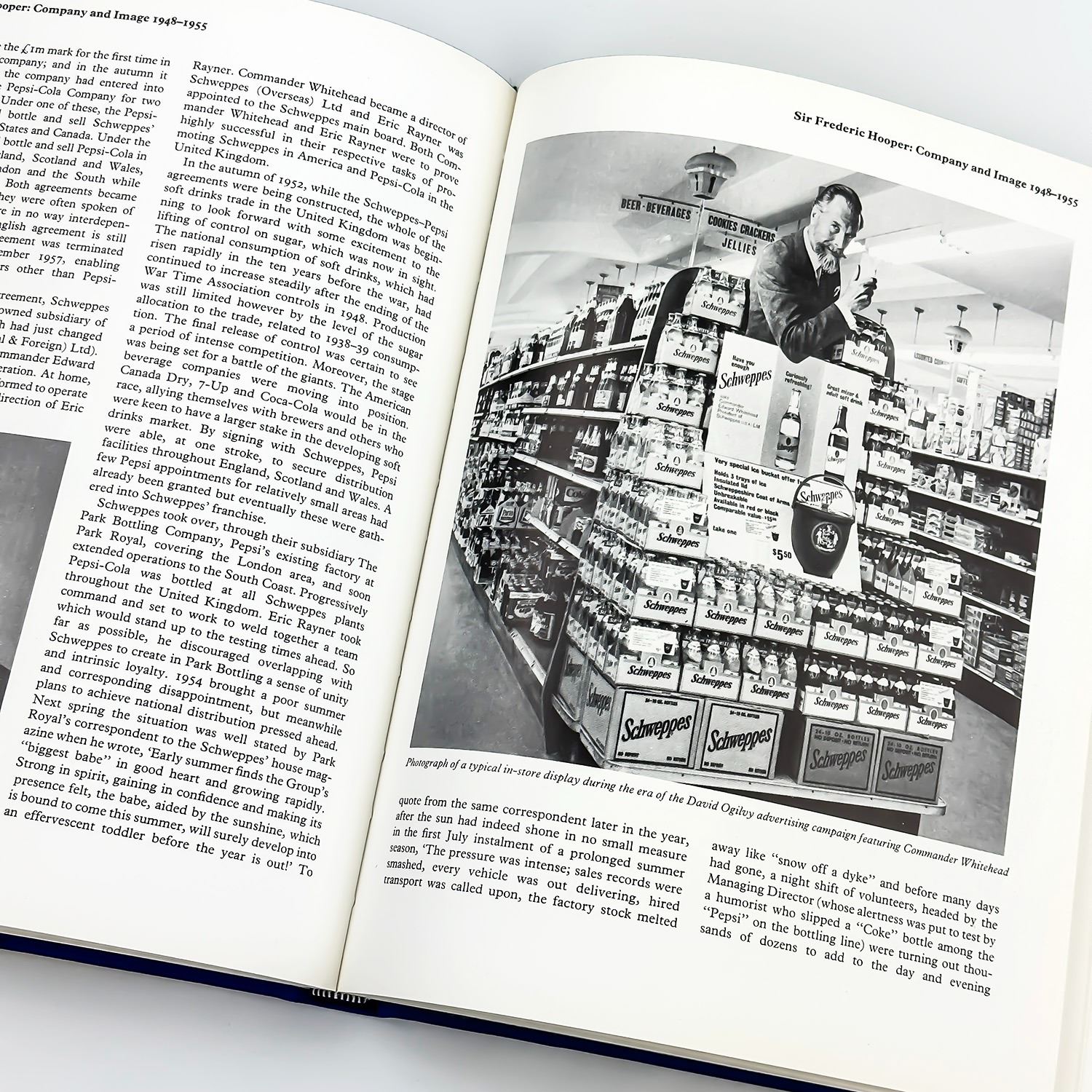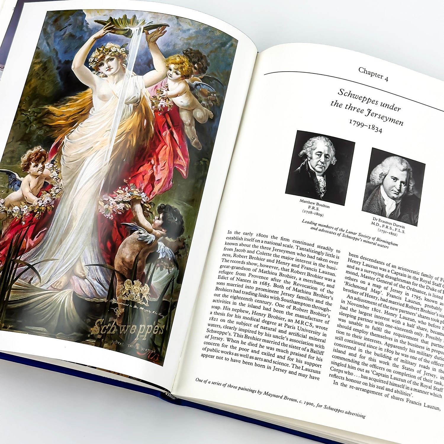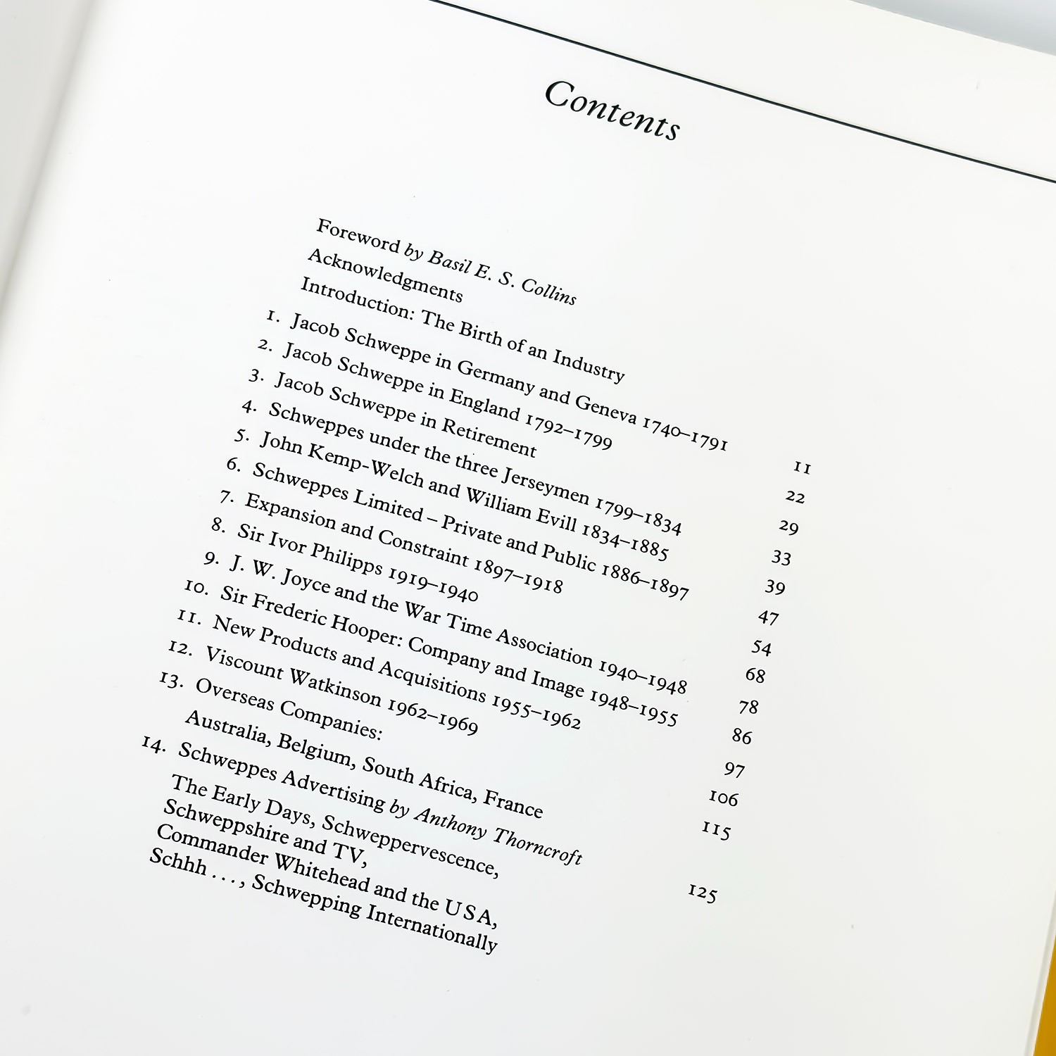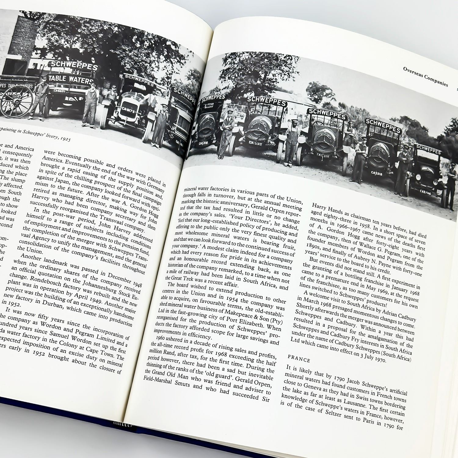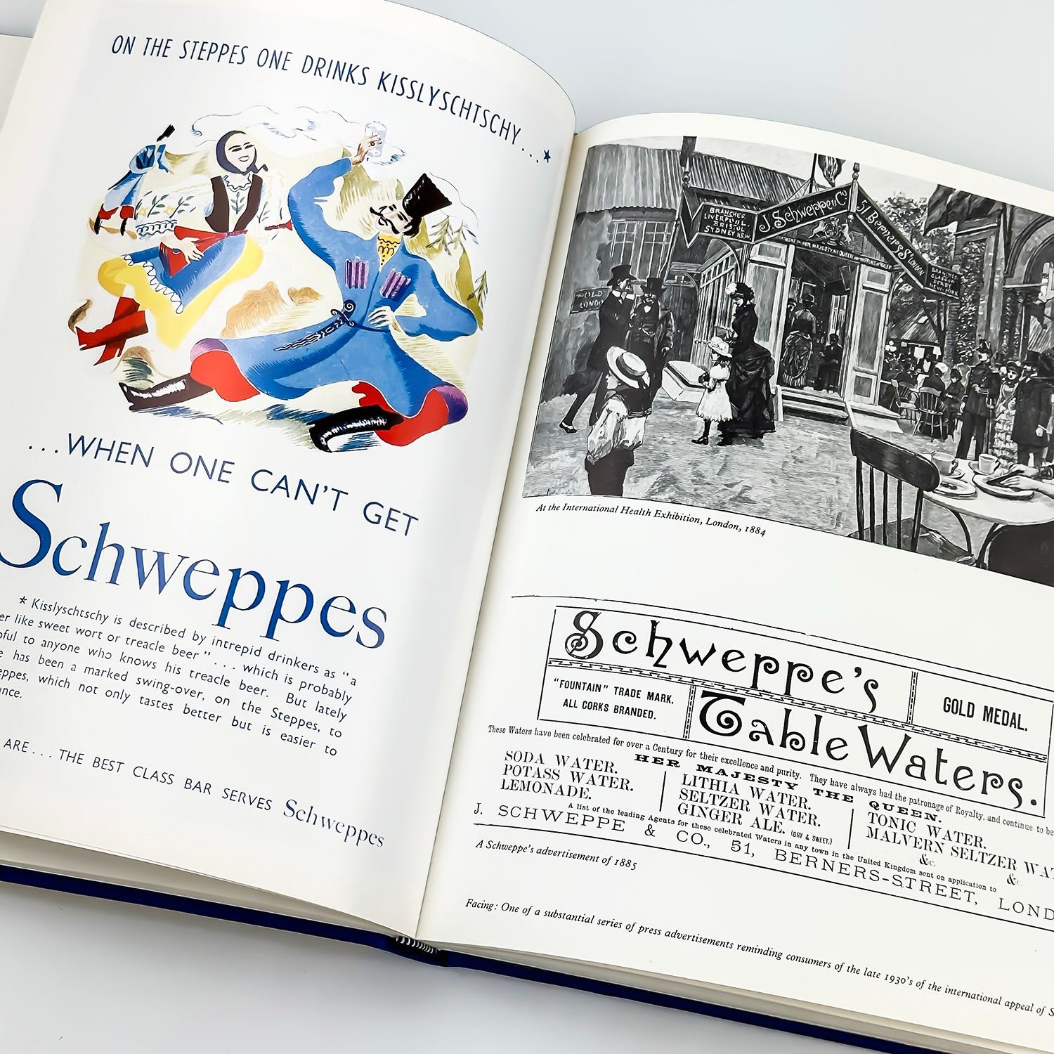 #8368 - THE STORY OF SCHWEPPES - OLDEST MINERAL WATER MANUFACTURER IN THE WORLD - 18TH CENTURY TO THE 1980’S. SCHWEPPES GINGER ALE, CLUB SODA, GINGER BEER, TONIC WATER ETC. HARDCOVER WITH DUST JACKET - 160 PAGES. MEASURES: 8.5” X 11”