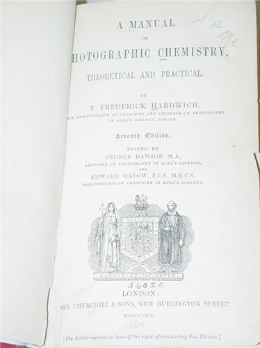 SCIENCE. A Group of 2 Volumes as Listed. Hard Cover. Ex-Library. Fair to Good Condition. ***A New Treatise on the Use of the Globes, or, A Philosophical View of the Earth and Heavens: Comprehending an Account of the Figure, Mangnitude, and Motion of the Earth, the Natural Changes of it's Surface, Caused by Floods, Earthquakes, etc. Together with the Elementary Principles of Meteorology, and Astronomy, the Theory of Tides etc. by Thomas Keith (1819) 3rd American Edition from the Last London Improved Edition, , NY: Samuel Wood & Sons. 8vo, leather bound with brown leather spine label. Binding tight, hinges cracked, surface has some peeling, backstrip wear, interior foxing. ***A Manual of Photographic Chemistry, Theoretical and Practical by T. Frederick Hardwich (1864) 7th Edition, London: John Churchill & Sons. 12mo, library cloth over boards, hinges taped, binding tight. Includes Collodian and the Nitrate Bath, Positive Printing, Salts of Silver, Daguerreotype, Stereography and more.