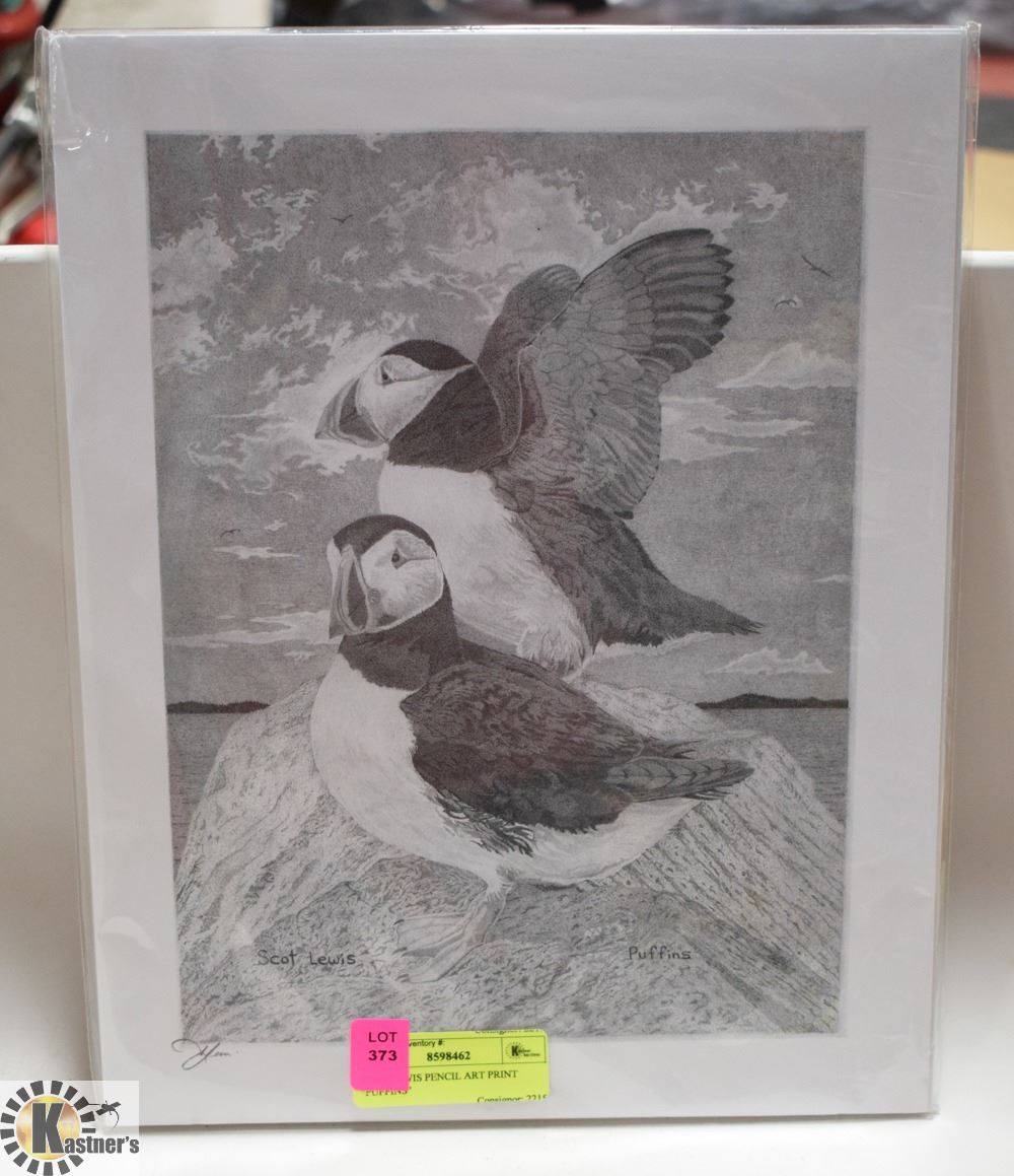 SCOT LEWIS PENCIL ART PRINT "PUFFINS"