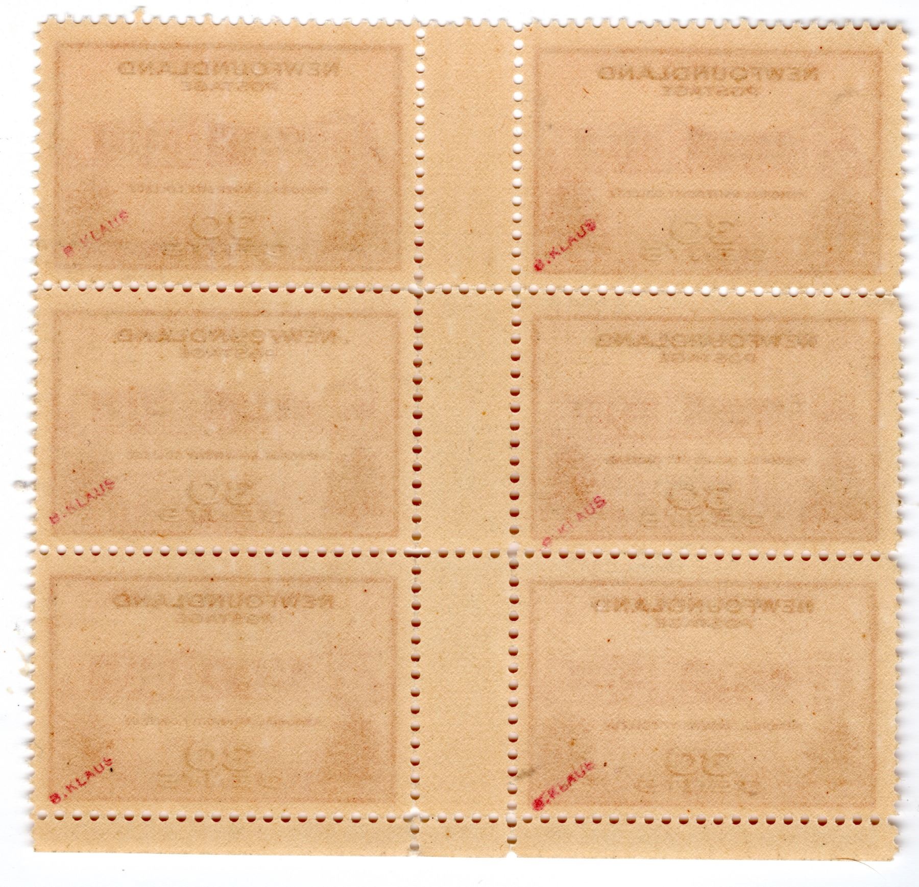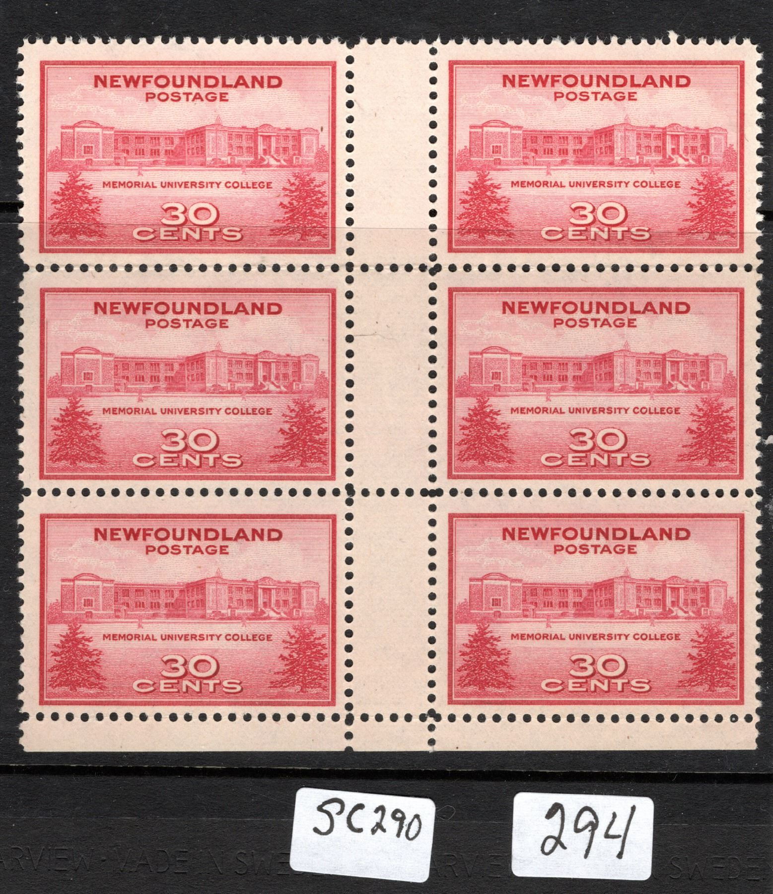 SCOTT 290 NEWFOUNDLAND 30C GUTTERBLOCK OF 6 STAMPS