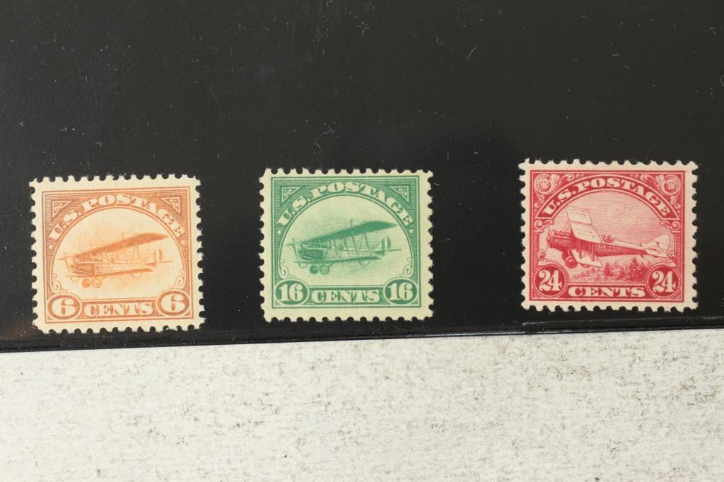 C2-SIXTEEN CENT GREEN AND C6-TWENTY-FOUR CENT CARMINE AIR MAIL STAMPS MINT UNUSED