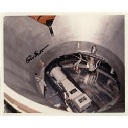 <b>1120. DAVE SCOTT</b> American astronaut who walked on the moon during the Apollo 15 mission. Superb and rare S.P. 10" x 8" color, an original NASA photo taken on Mar. 7, 1966 showing the Gemini 8's target docking adapter in close up, nine days prior to its launch on Mar. 16, 1966, in which it performed the first docking in space. Boldly signed "<i>Dave Scott</i>", and in fine condition.<b> $250-350</b>
