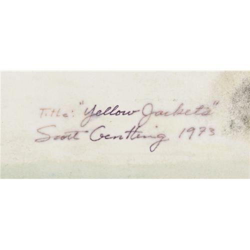 <B>SCOTT GENTLING (b. 1942)</B></I><BR><I>Yellow Jackets,</B></I> 1973<BR>Watercolor and dry brush<BR>24in. x 18in.<BR>Signed, dated, and titled verso<BR><BR>Scott Gentling is marvelous at capturing the visual quality of dried and rotting wood with his adept dry-brush watercolor technique.<BR><BR>Provenance:<BR>Acquired from the artist by the present owner<BR><BR> <B>Condition Report:</B> Good condition with some water damage along the bottom margin of the painting. Unframed.<BR><BR><b>Shipping:</b> Requires 3rd Party Shipping (<a target="_blank" href="http://www.heritageauctions.com/common/shipping.php">view shipping information</a>)