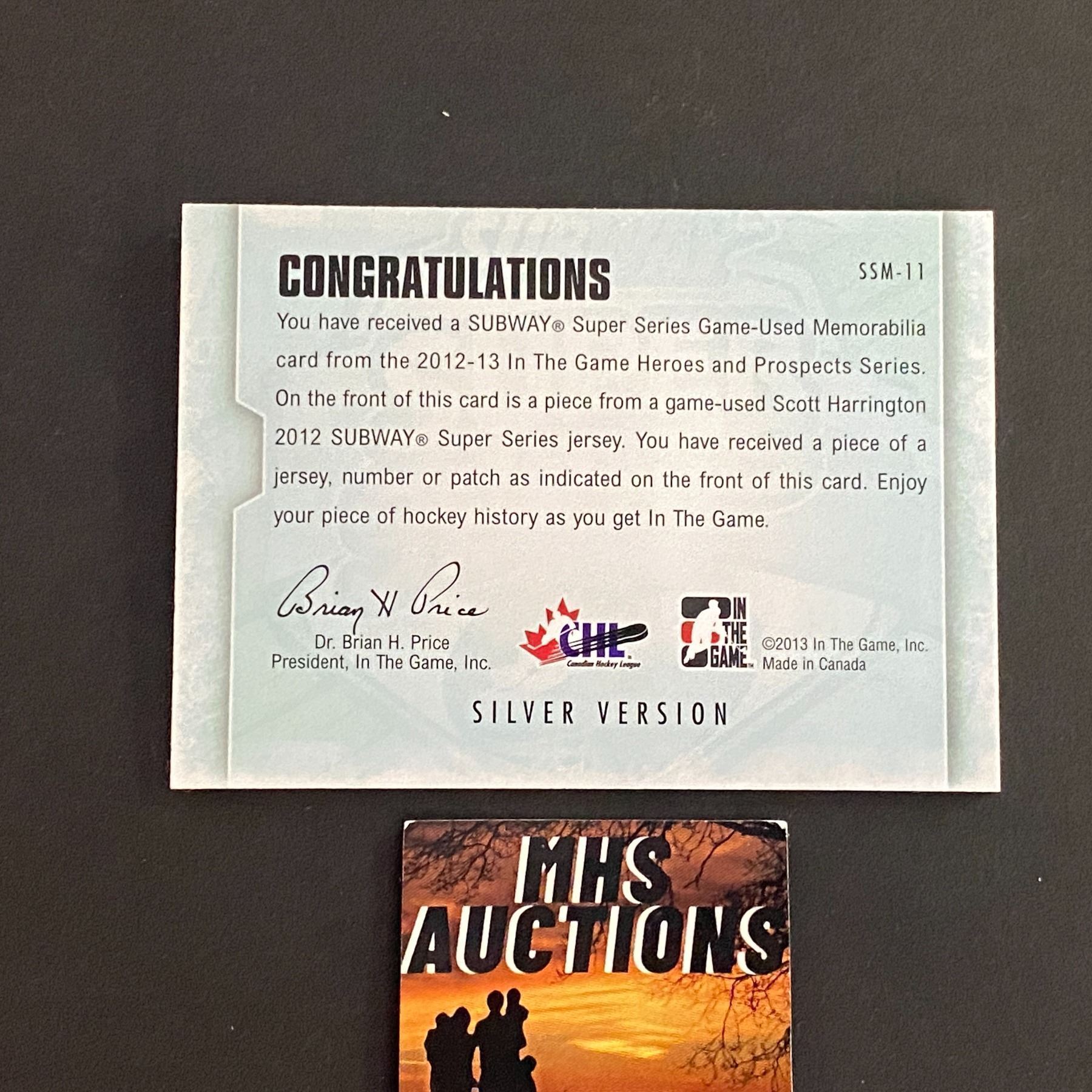 SCOTT HARRINGTON 2013 IN THE GAME PATCH HOCKEY CARD