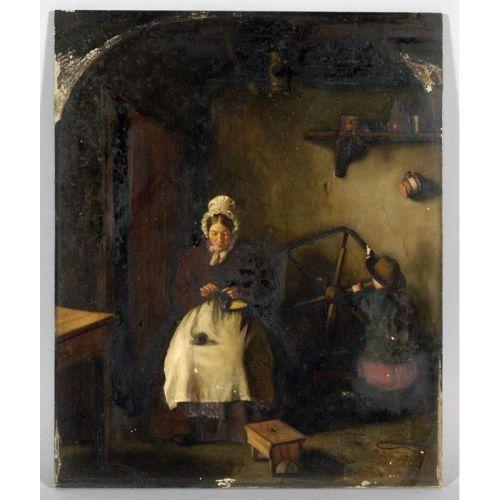 SCOTTISH SCHOOL, 17"x14" oil on panel, Kitchen Interior Scene, mid-19th century, unframed, CONDITION REPORT: frame rubs at edges, minor flakes. PACKING AND SHIPPING: We offer packing (double boxed in most cases) and shipping of this item within the Continental United States by USPS or UPS (our choice- boxes over 30lbs or oversized may be recalculated based on buyer's location), NOT INCLUDING INSURANCE (it will be added when we know the sales price) for $30