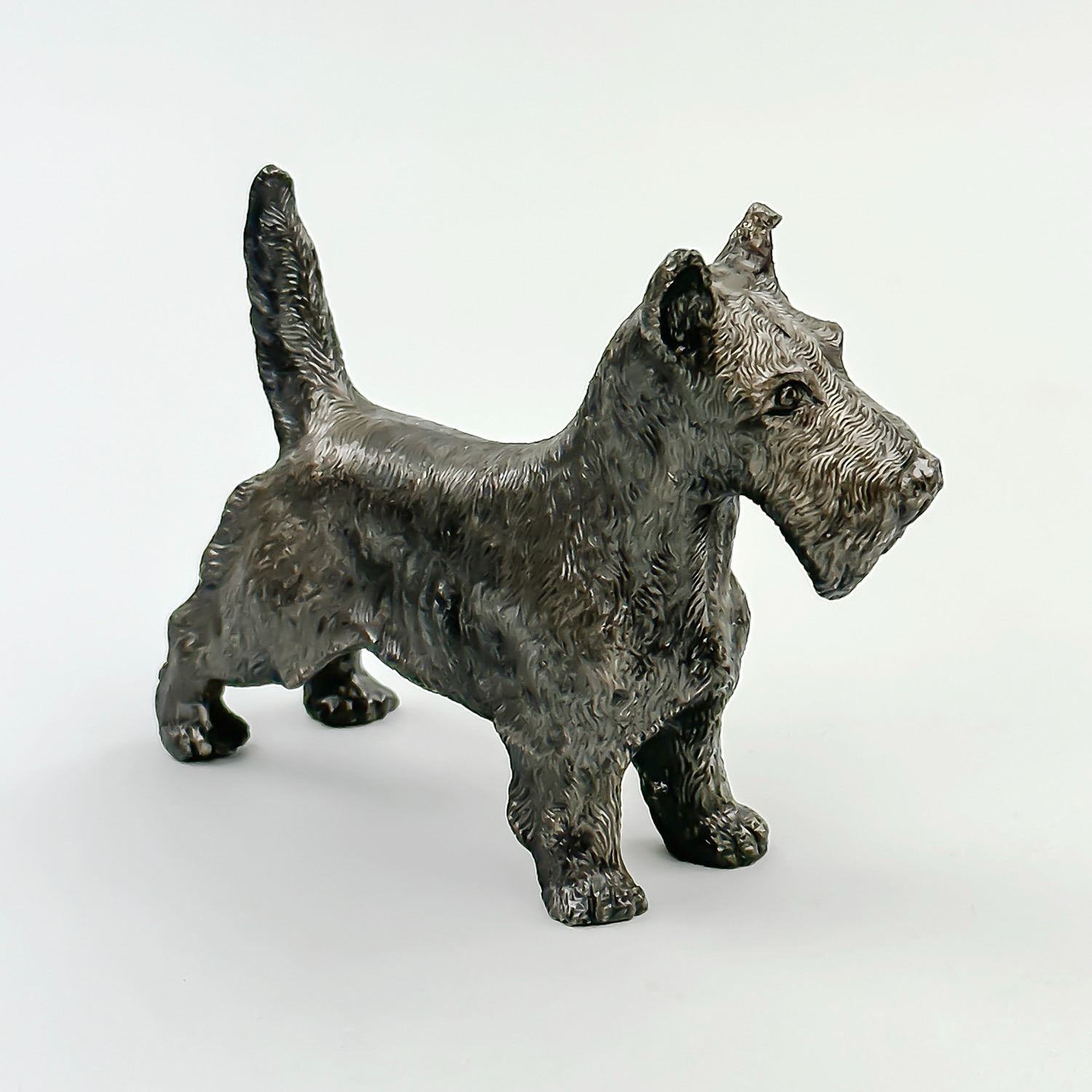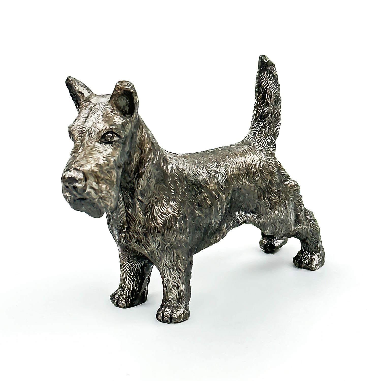 #8556 - UNMARKED CAST METAL MINIATURE SCOTTISH TERRIER DOG SCULPTURE. HE WEIGHS 570 GRAMS - GOOD PAPERWEIGHT. HE MEASURES: 4.25” (11 CM) LONG BY 1.125” (3 CM) WIDE AND 3” (7.5 CM) HIGH***ITEM(S) LOCATED IN LETHBRIDGE ALBERTA. FREE TRANSPORT TO EDMONTON OFFICE AVAILABLE FOR THIS AUCTION. WORLDWIDE SHIPPING IS AVAILABLE FOR ALL ITEMS